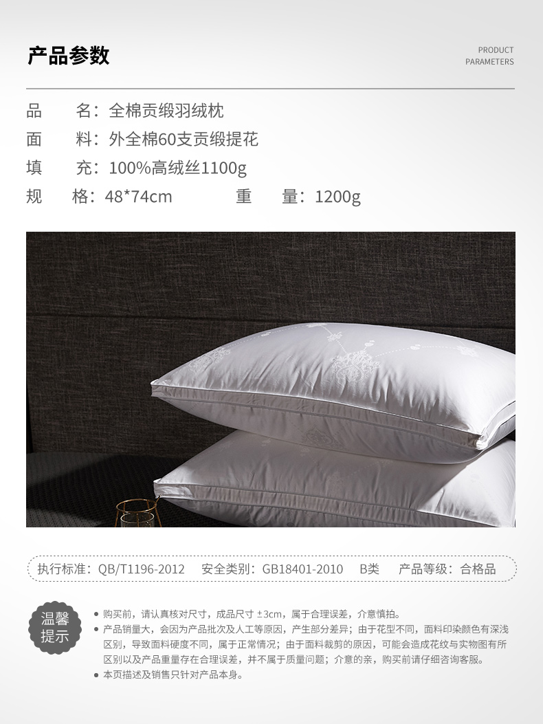 元元被业 60S全棉贡缎大提花羽绒枕芯