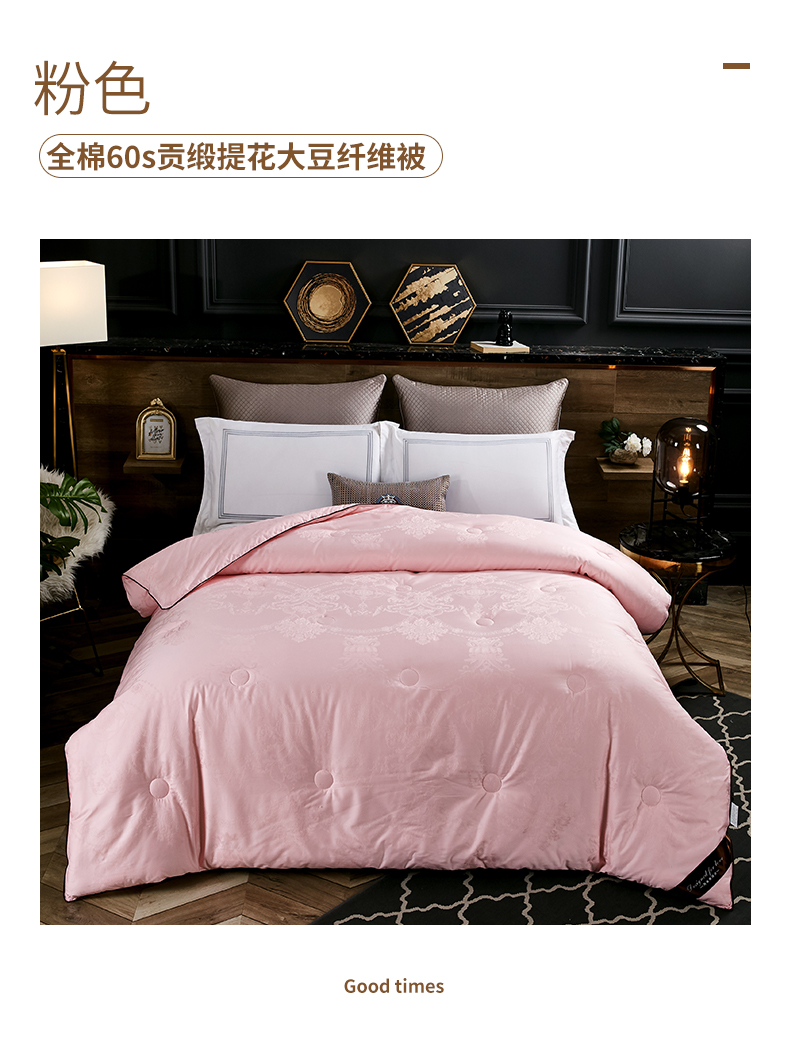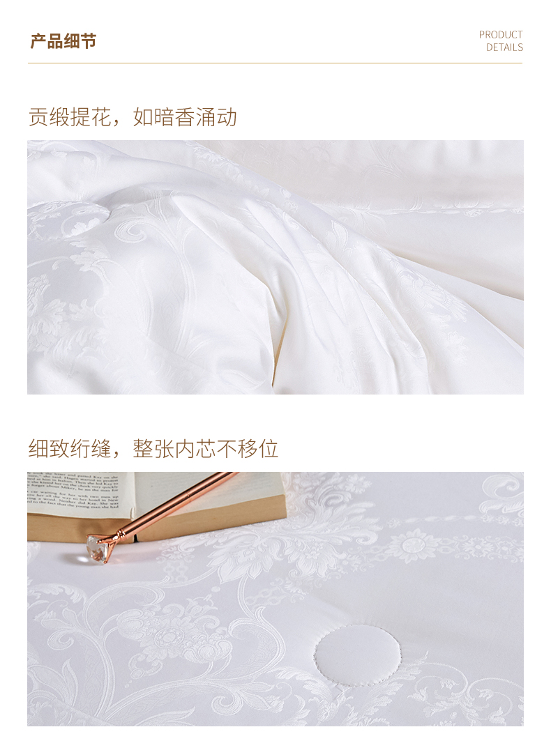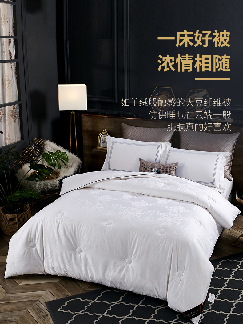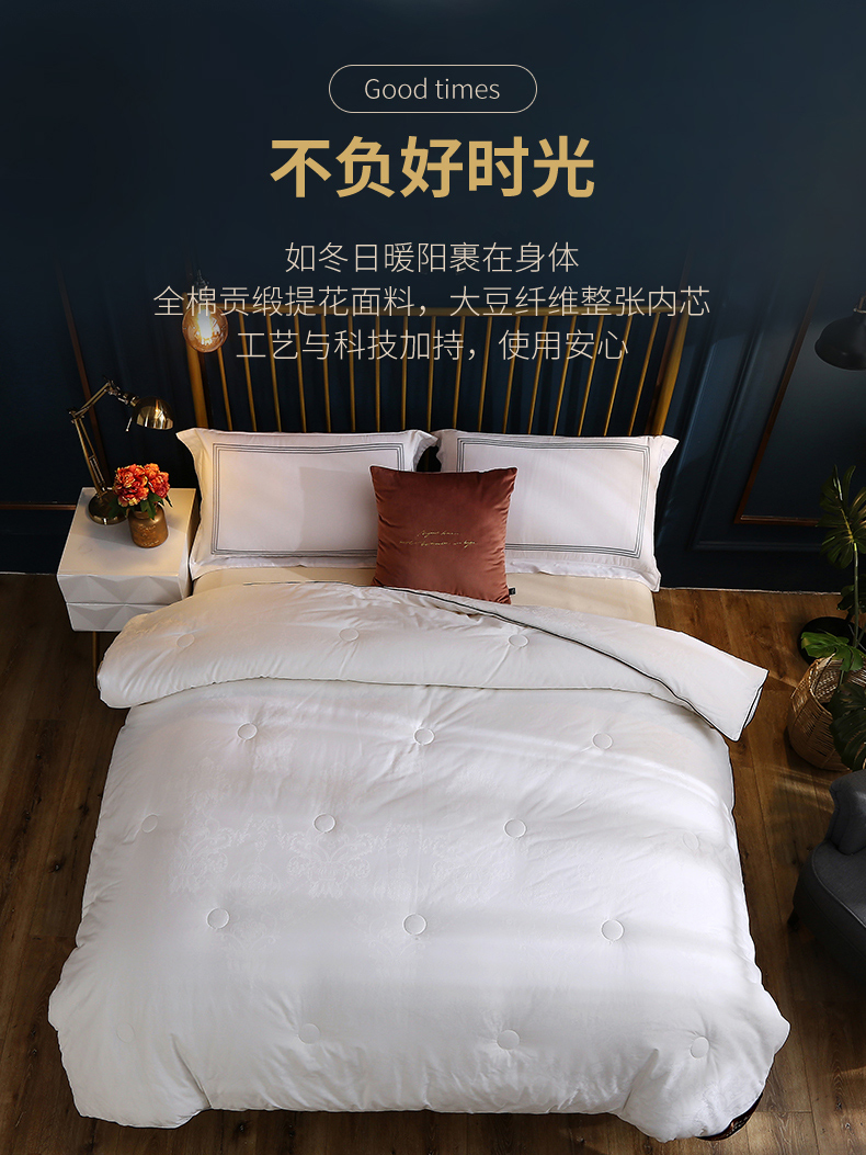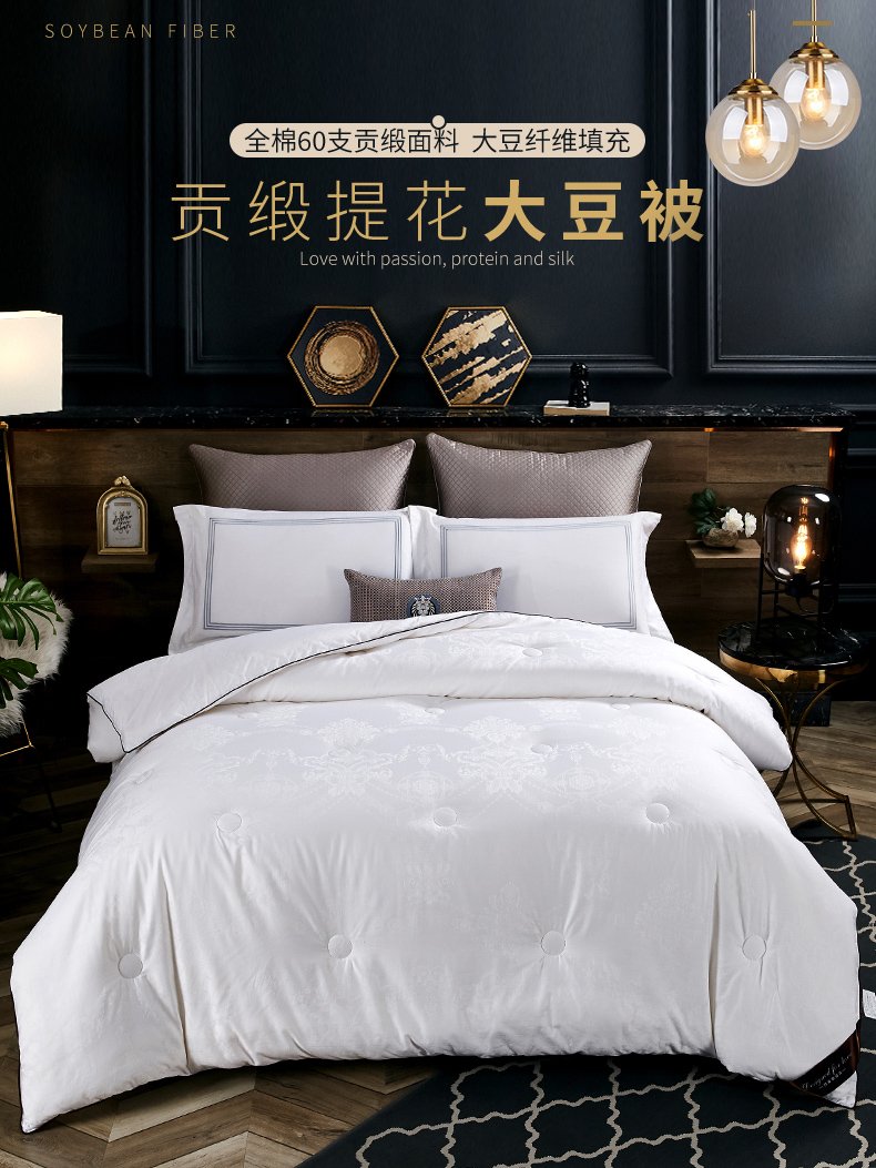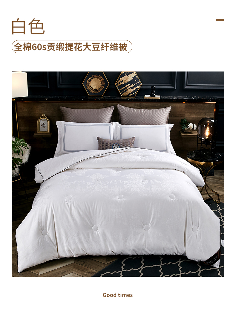 元元被业 全棉60支贡缎大提花 20%大豆纤维被-白色