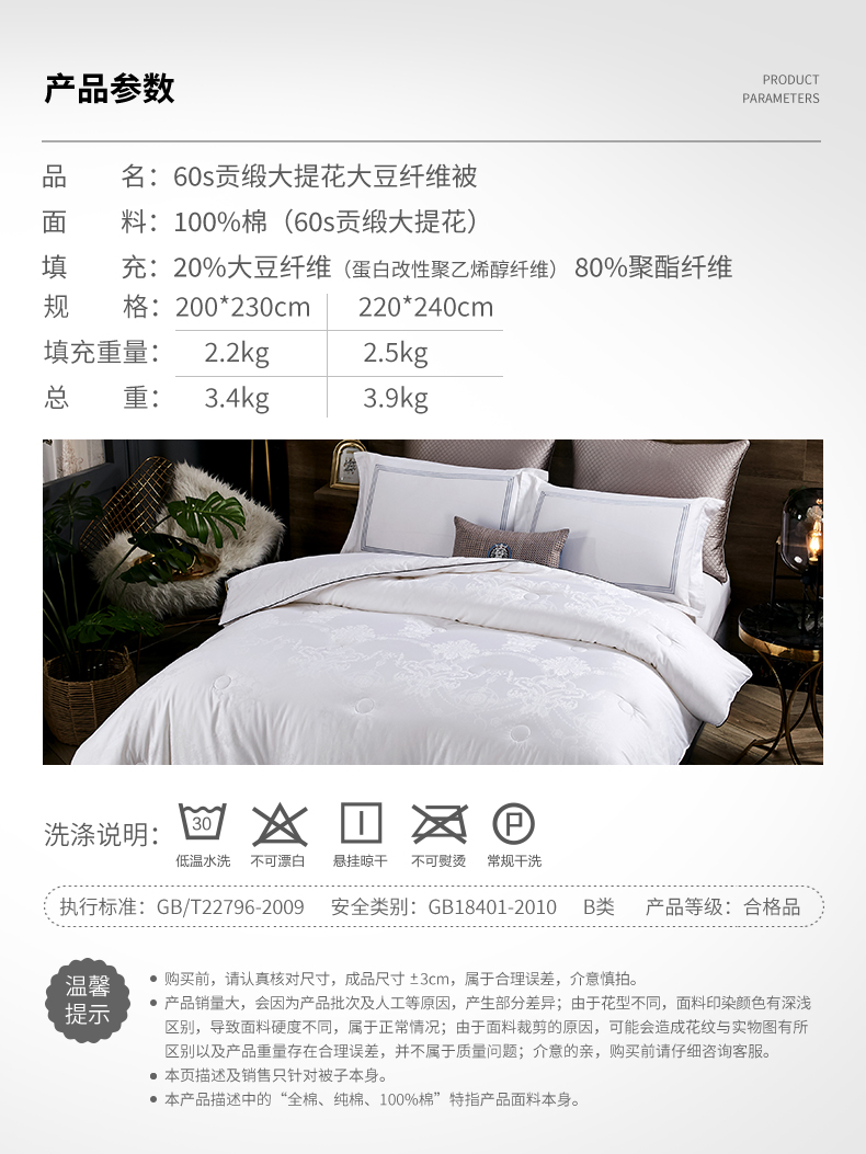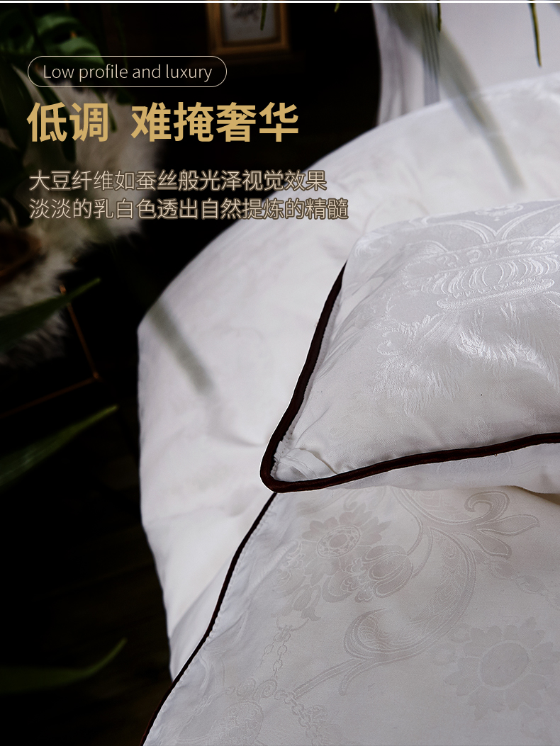成份工艺:全棉60支贡缎大提花 20%大豆纤维
