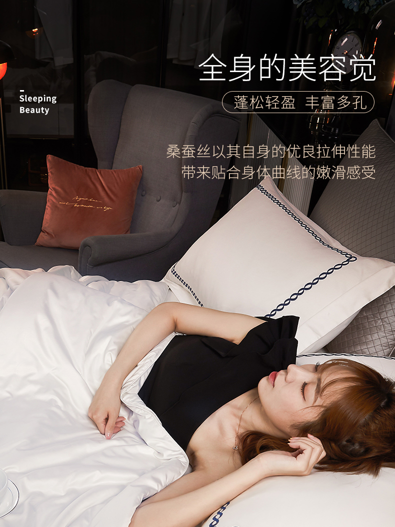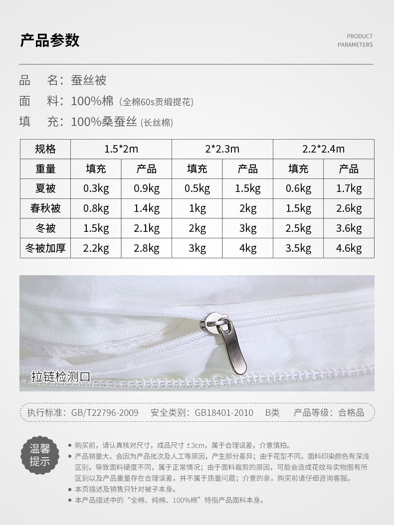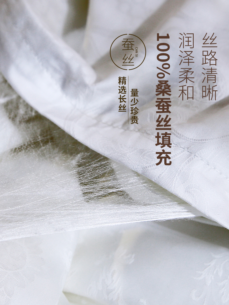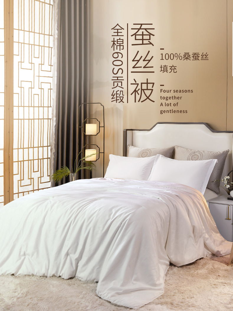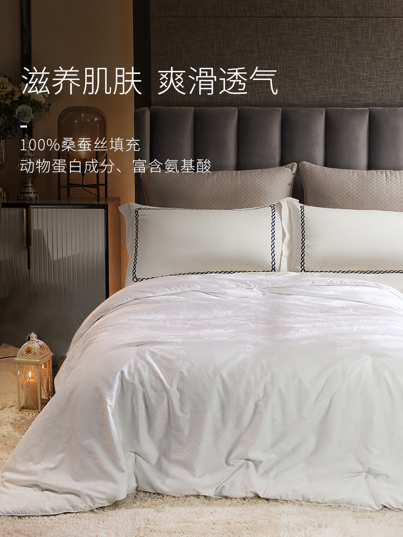 元元被业 全棉60支贡缎大提花 100%桑蚕丝被-2色多尺寸多重量