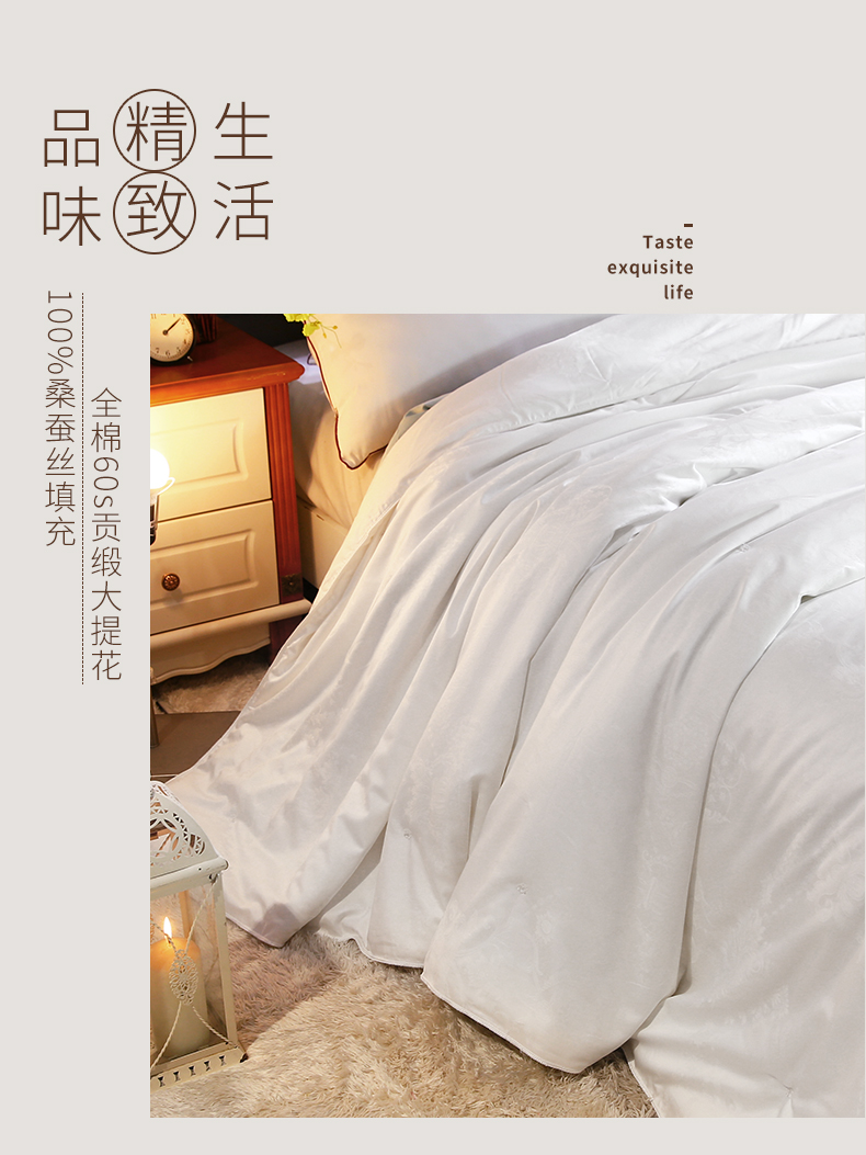产品分类:全棉60支贡缎大提花 100%桑蚕丝填充