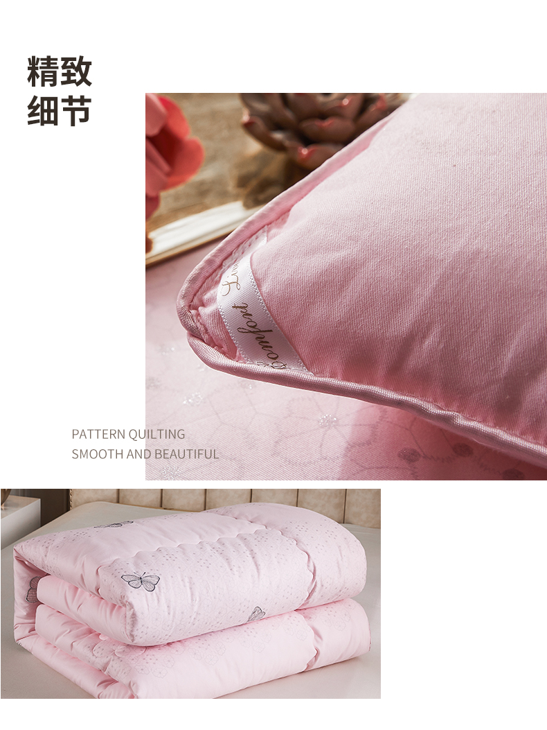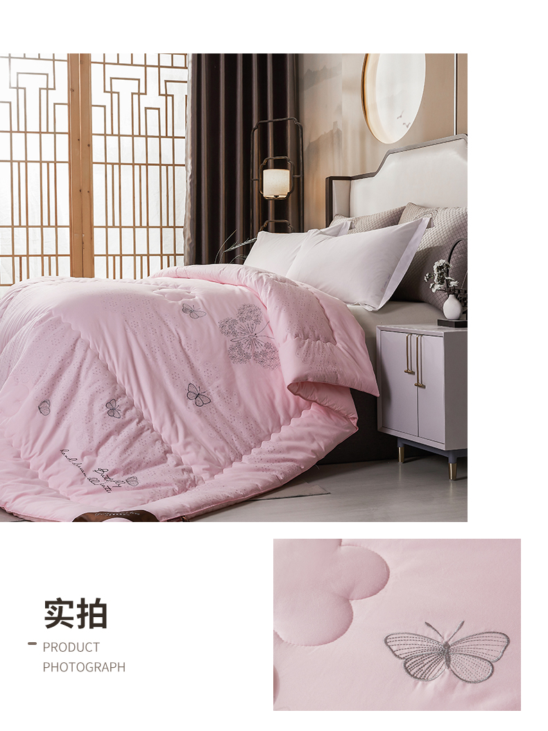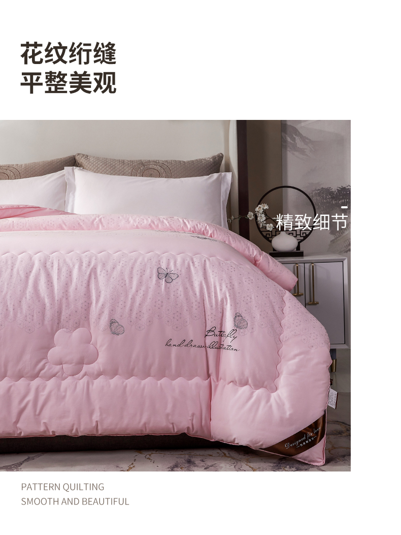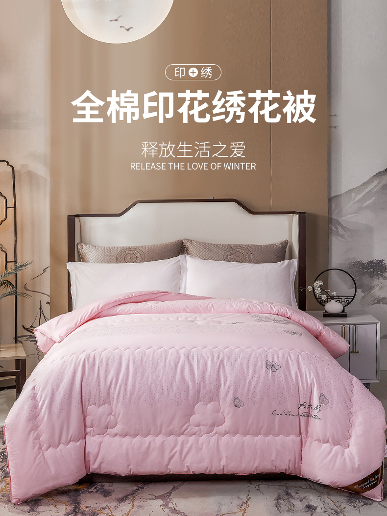元元被业 全棉13372喷气印花 绣花 春秋被 冬被 子母被-蝶飞 粉色