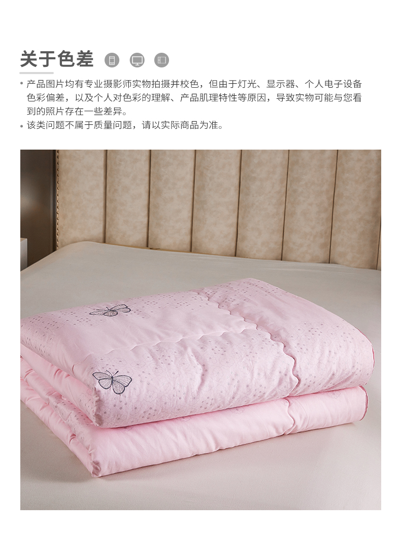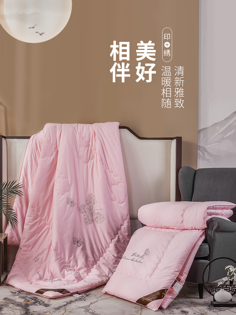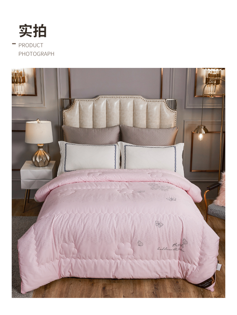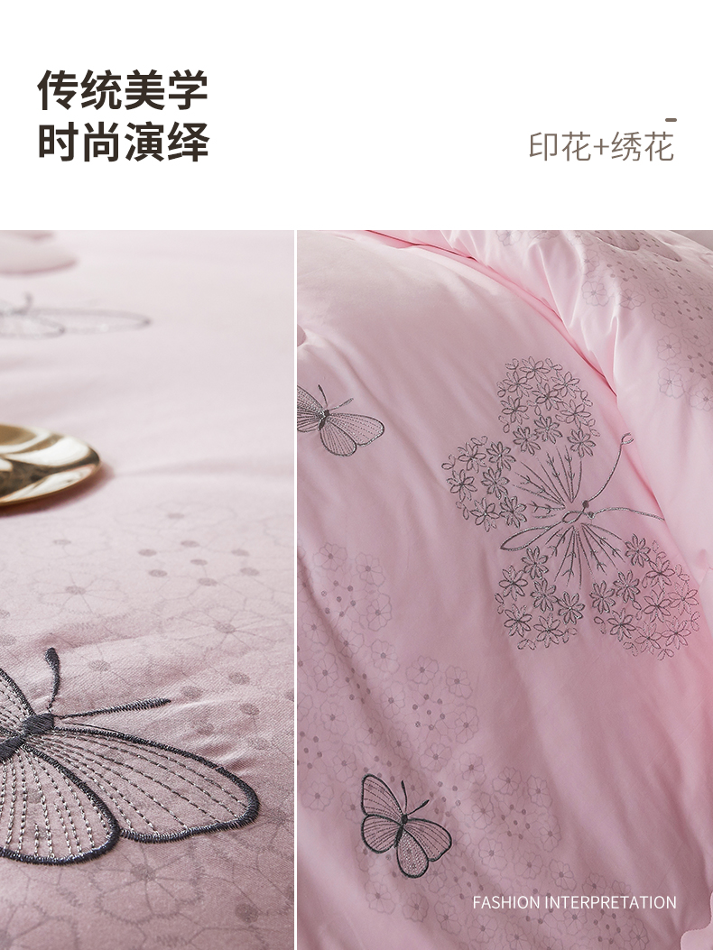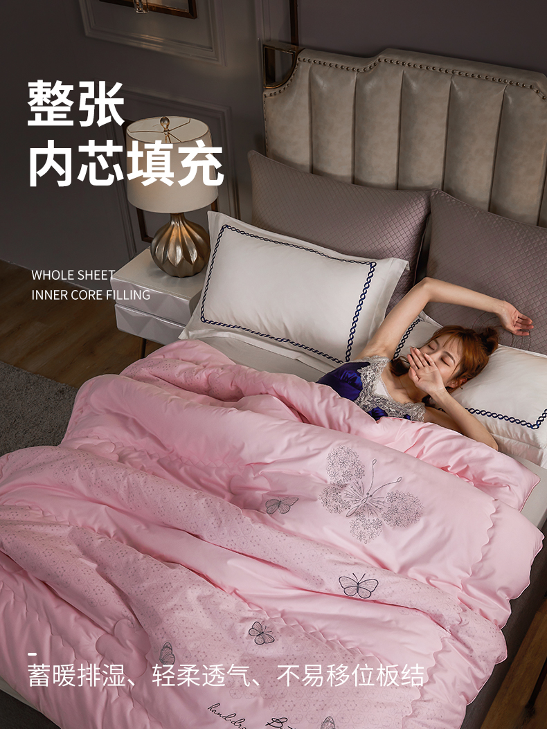 元元被业 全棉13372喷气印花 绣花 春秋被 冬被 子母被-蝶飞 粉色