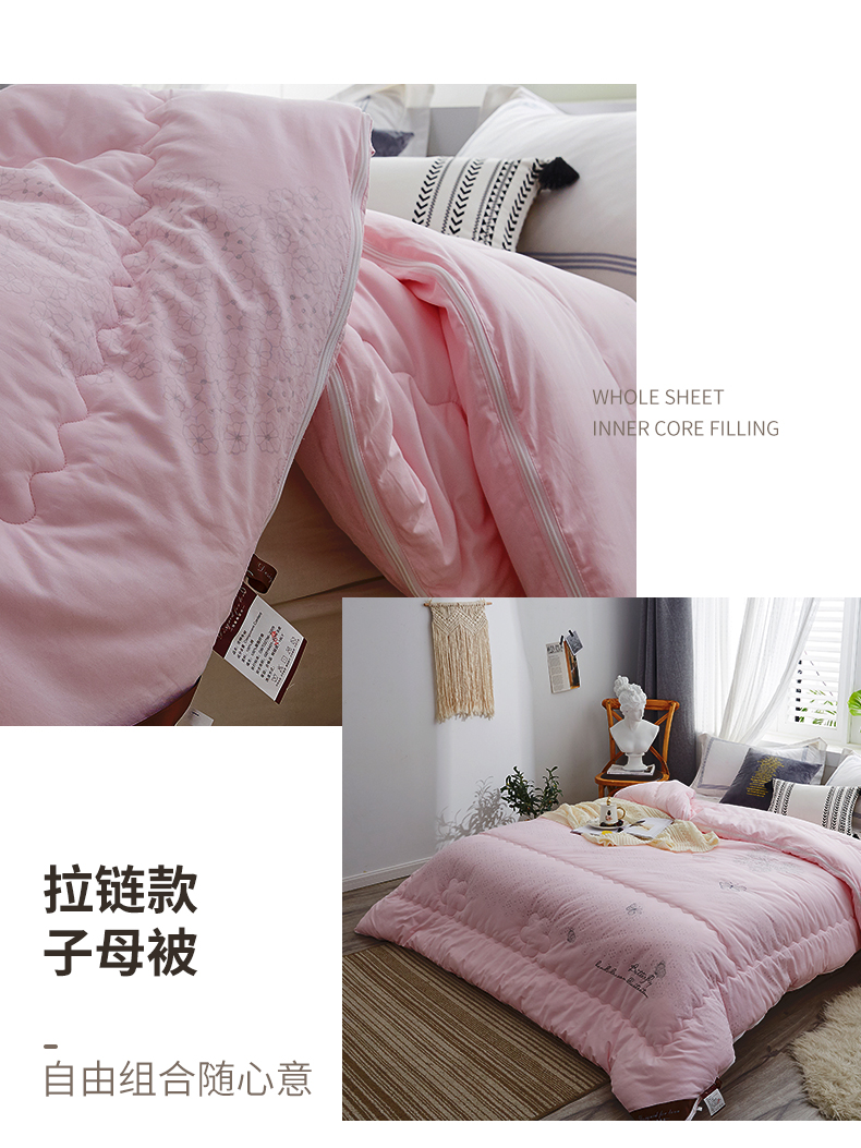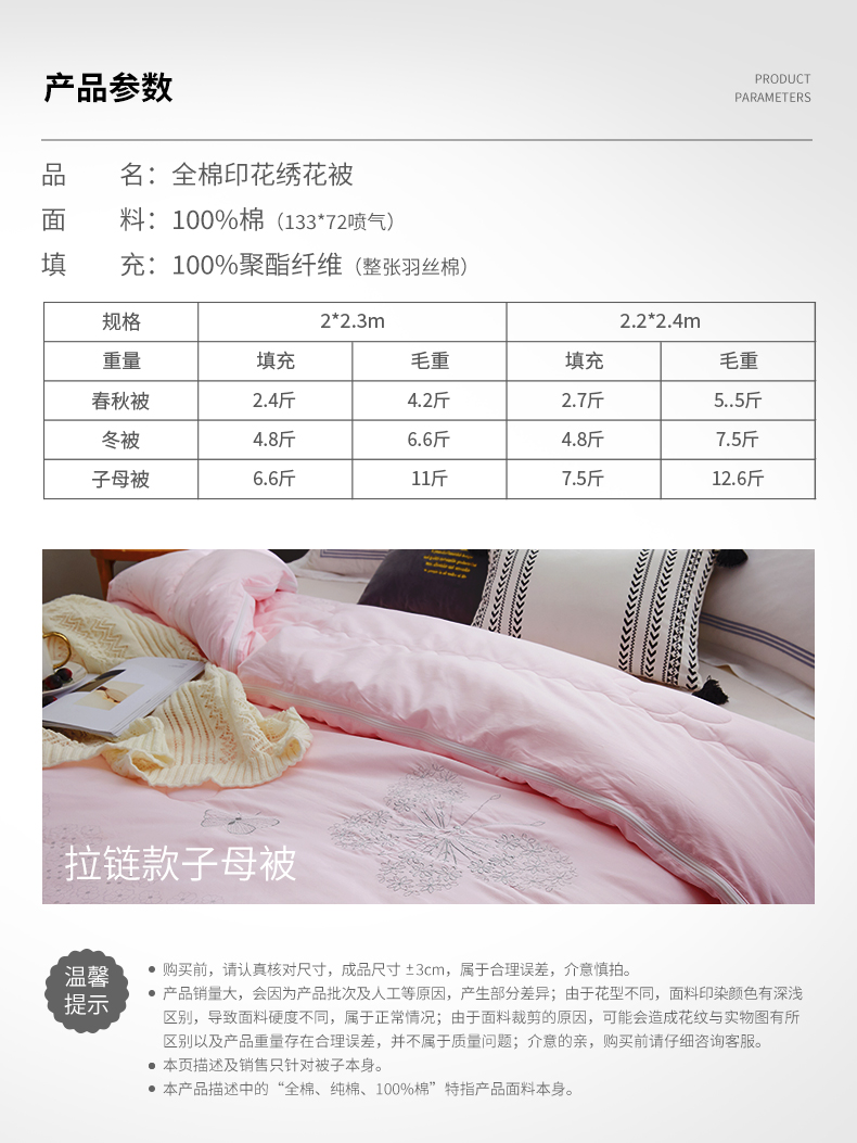 成份工艺:全棉喷气 印花 绣花 拉链子母双胎被
