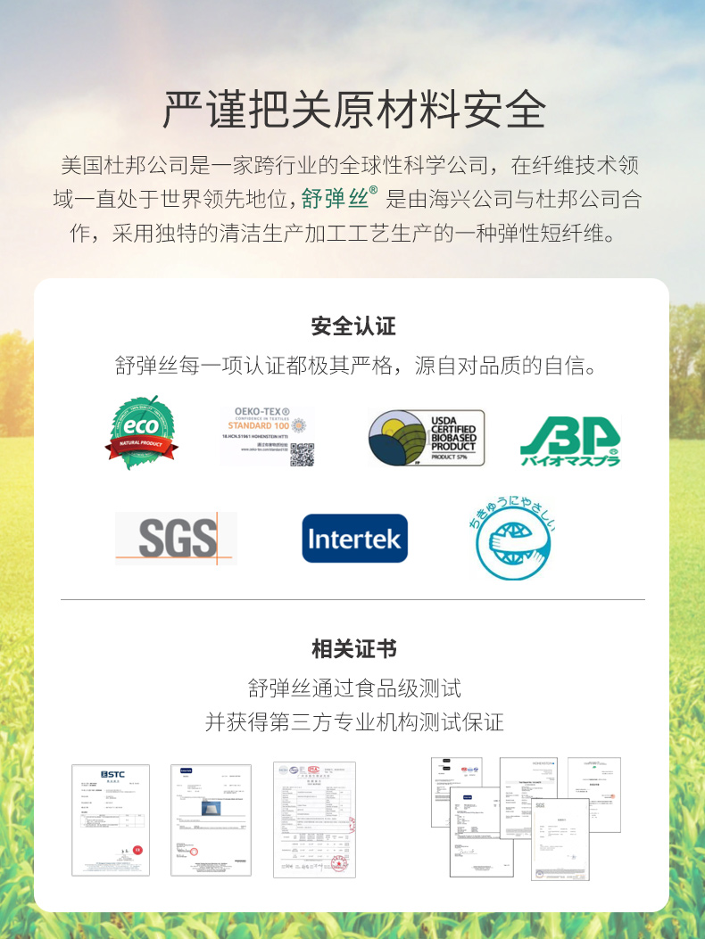 成份工艺:100%杜邦公司纤维填充 全棉色织