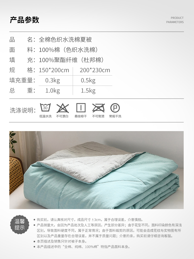 元元被业 全棉色织水洗棉杜邦棉纤维填充 夏凉被2色