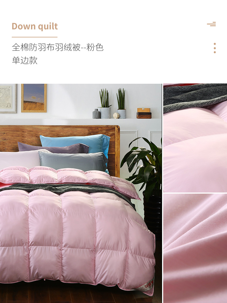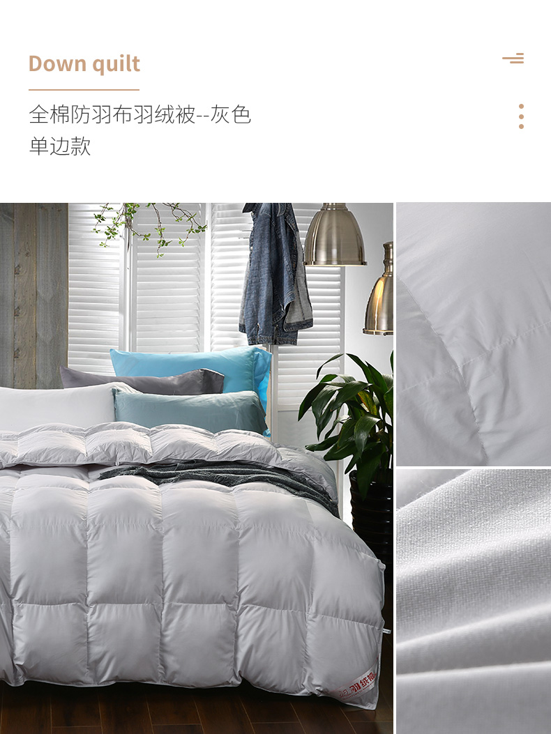 产品分类:70%白鸭绒 全棉单边款羽绒被