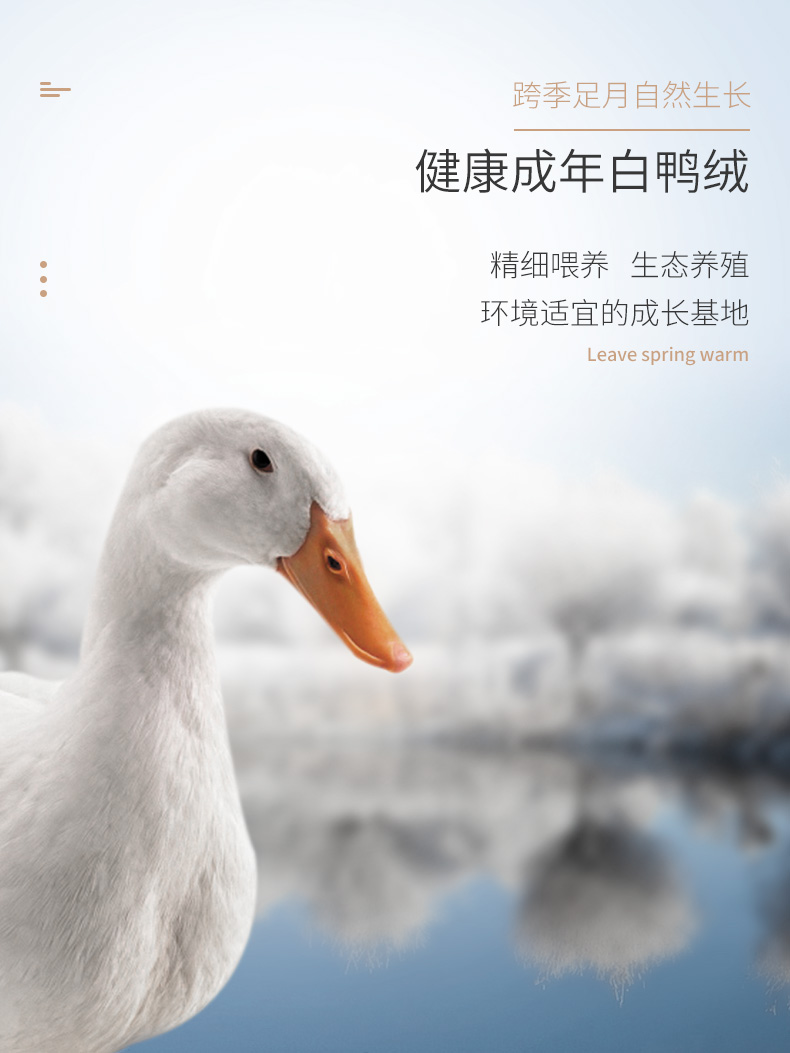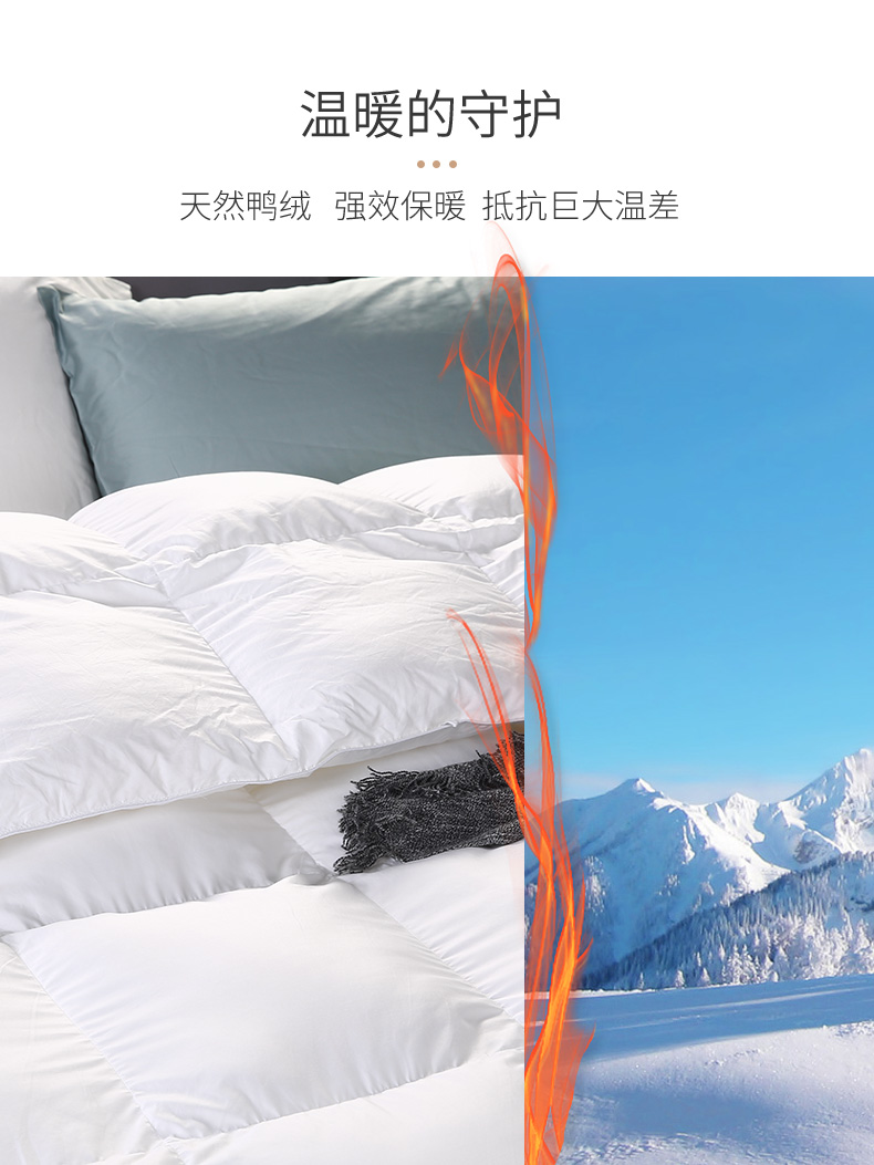 成份工艺:90%白鸭绒 全棉防羽布 单边款