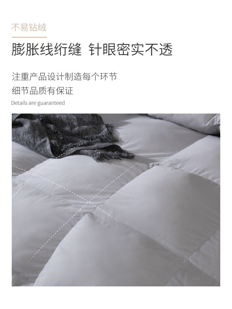 成份工艺:95%白鹅绒 80柔赛丝 立体边