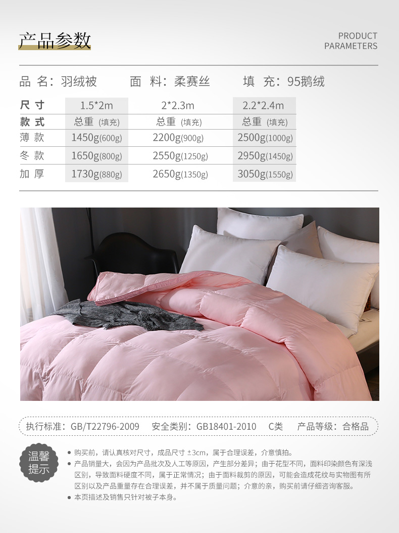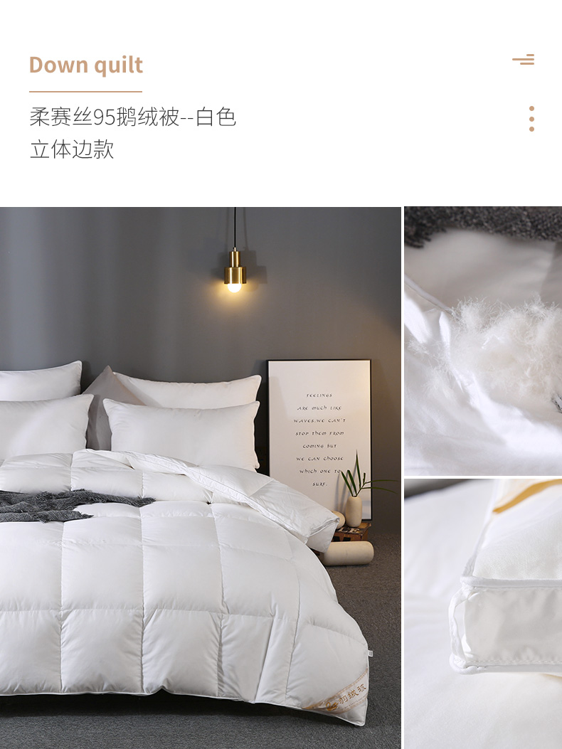 产品分类:95%白鹅绒 80柔赛丝立体边羽绒被