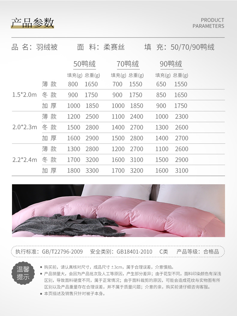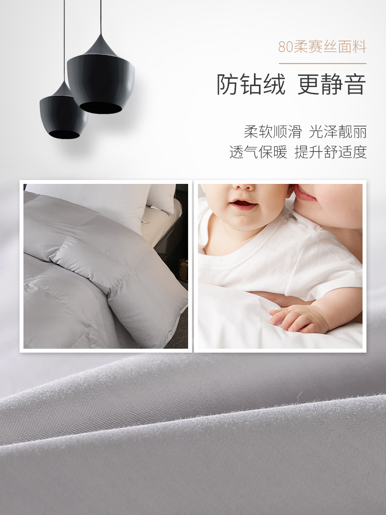 产品分类:90%白鸭绒 80柔赛丝单边款羽绒被