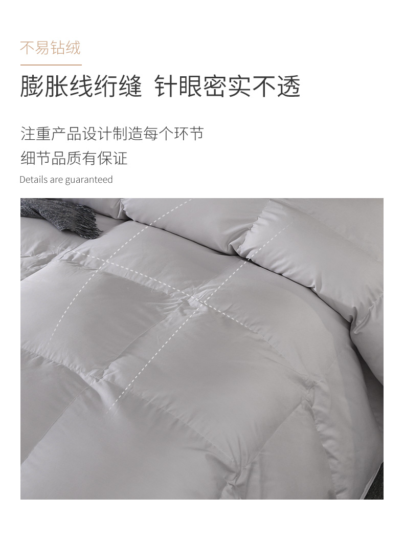 成份工艺:单边款 90%白鸭绒 80柔赛丝