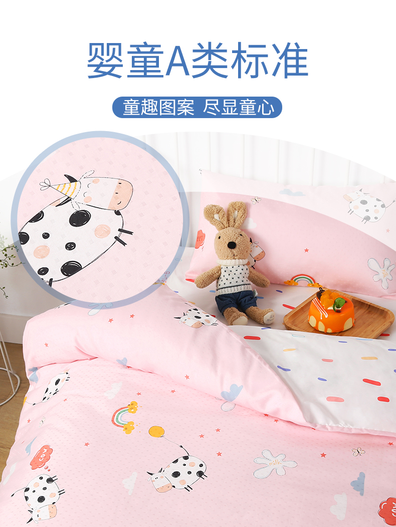元元被业 婴童抗菌三件套 六件套 被套夹棉可作夏凉被 一款两用 -小萌牛-粉