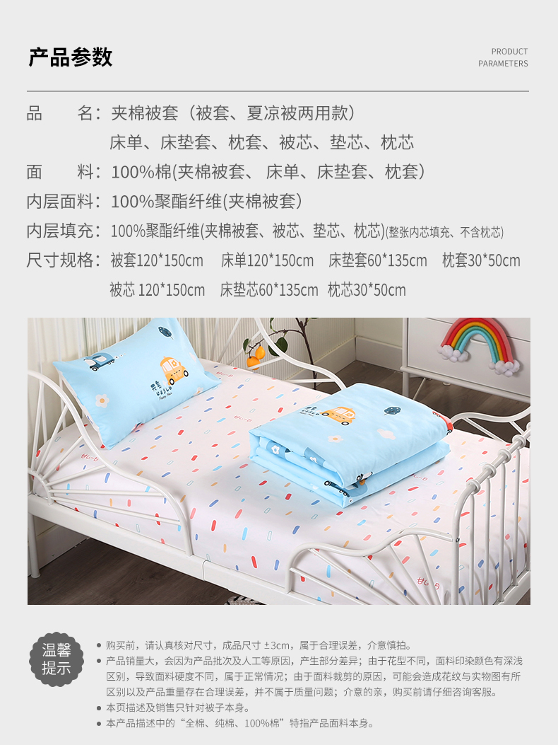 产品分类:婴童抗菌被套夹棉三件套六件套