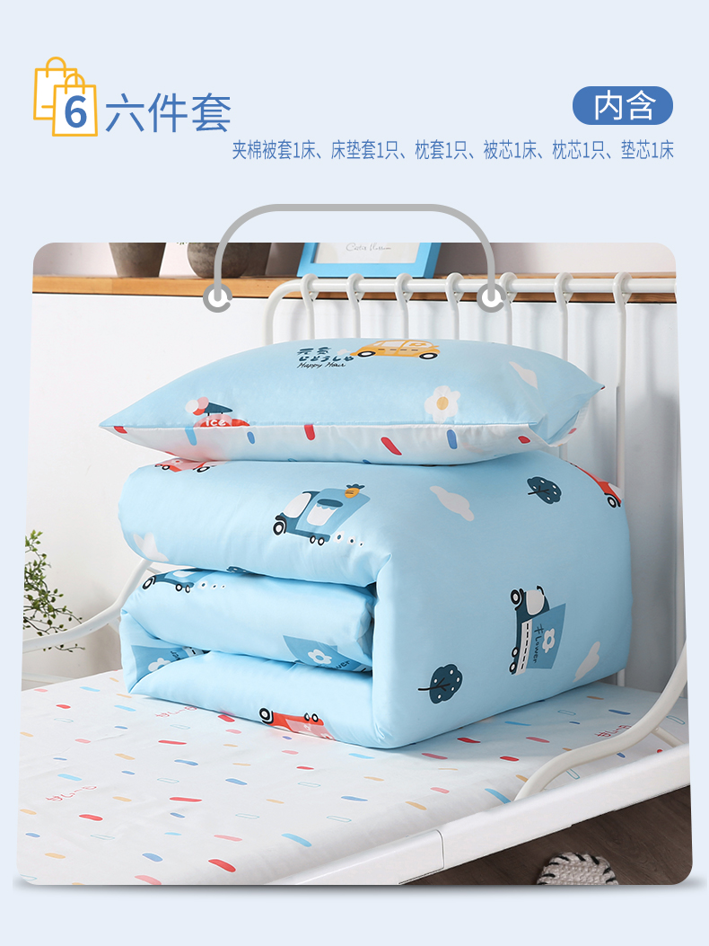 元元被业 婴童抗菌三件套 六件套 被套夹棉可作夏凉被 一款两用 -汽车伙伴