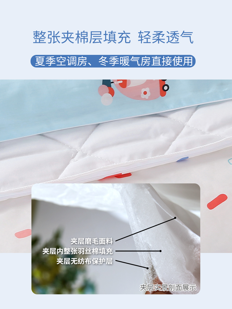 功能特点:夹棉被套可作夏凉被 一款两用 抗菌抑菌