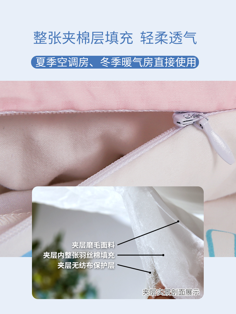 功能特点:夹棉被套可作夏凉被 一款两用 抗菌抑菌