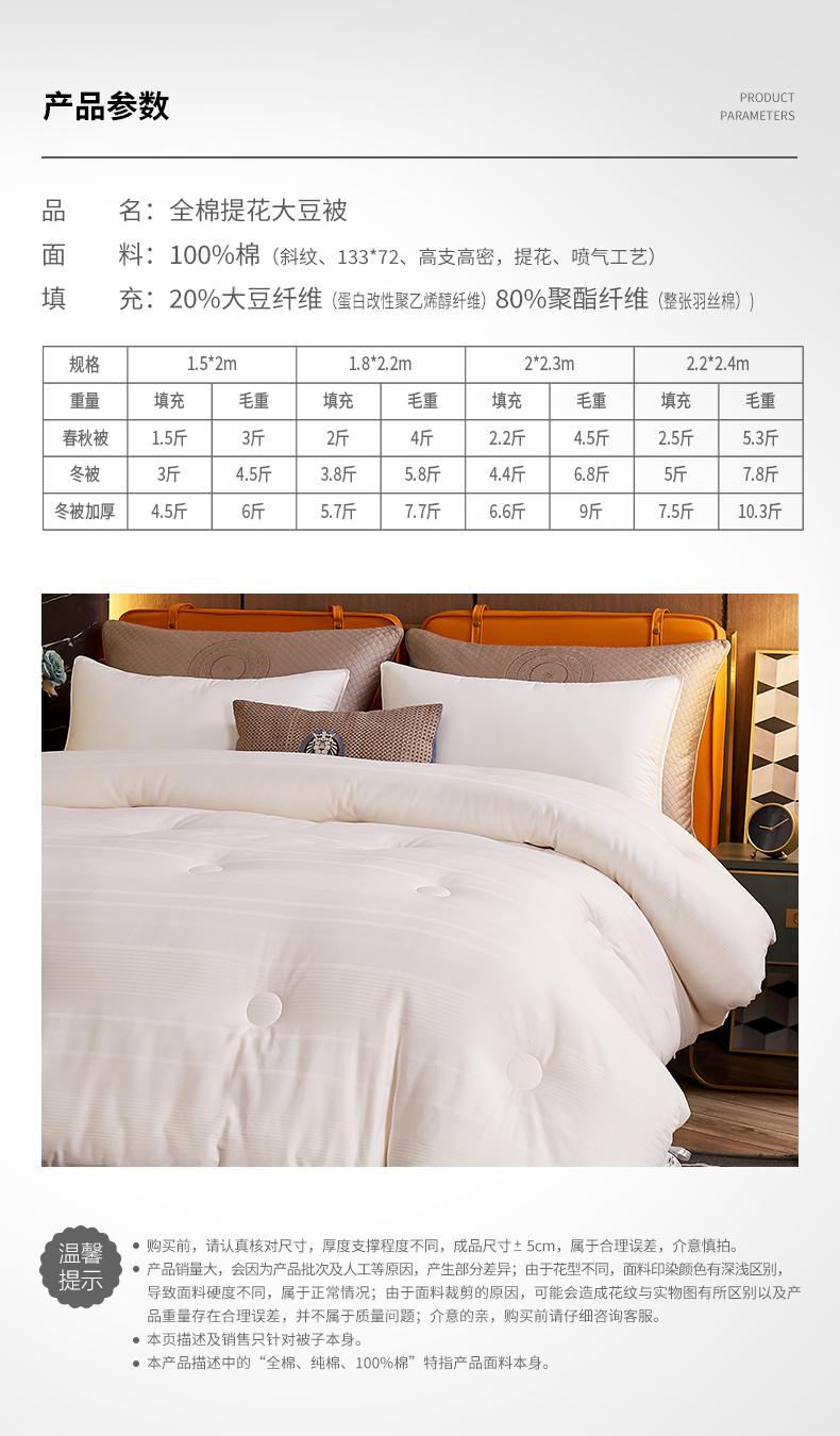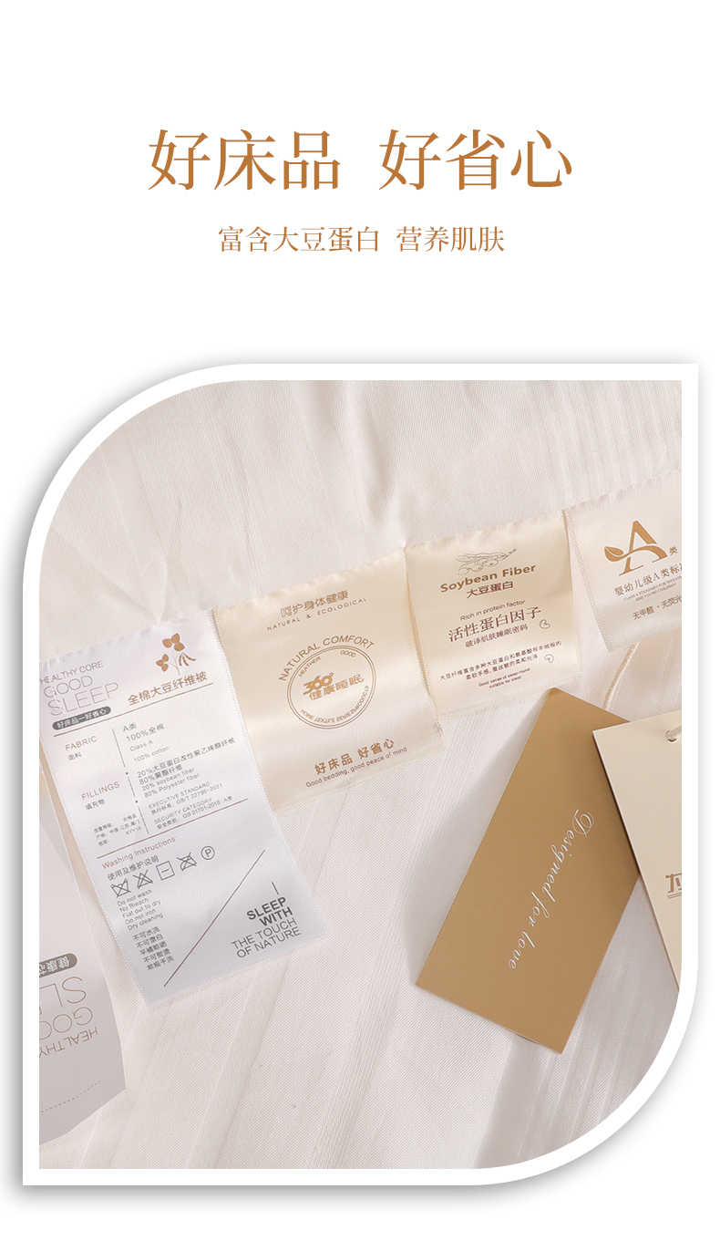 成份工艺:A类全棉提花 高支高密 20%大豆纤维