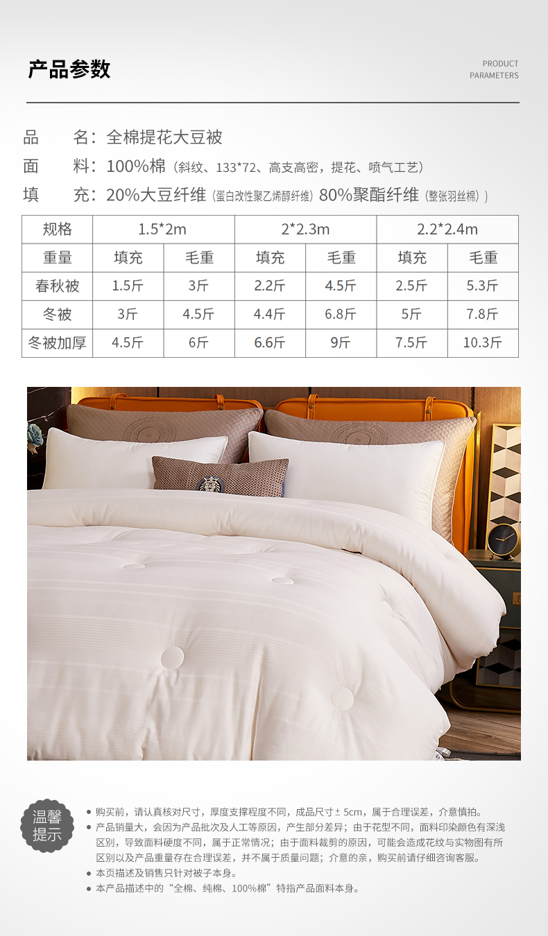 产品分类:A类全棉提花大豆被 20%大豆纤维