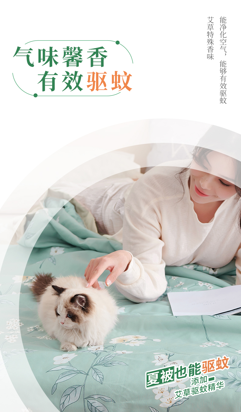 元元被芯 2023款 艾草驱蚊夏被 防蚊抑菌夏凉被 送手提包装 直播选品推荐