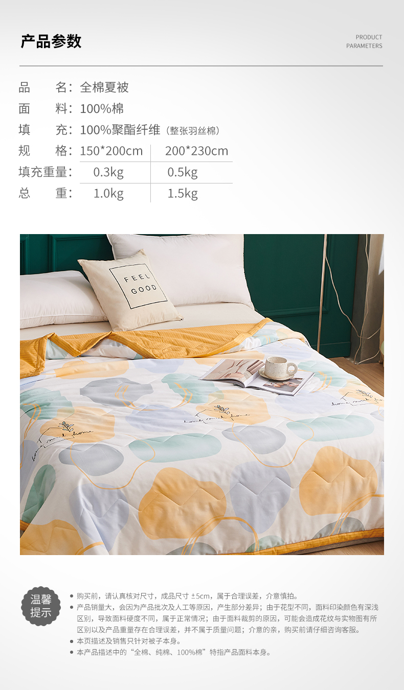 元元被业 2023款 全棉印花夏被 纯棉夏凉被 单人双人全棉空调被-七彩石