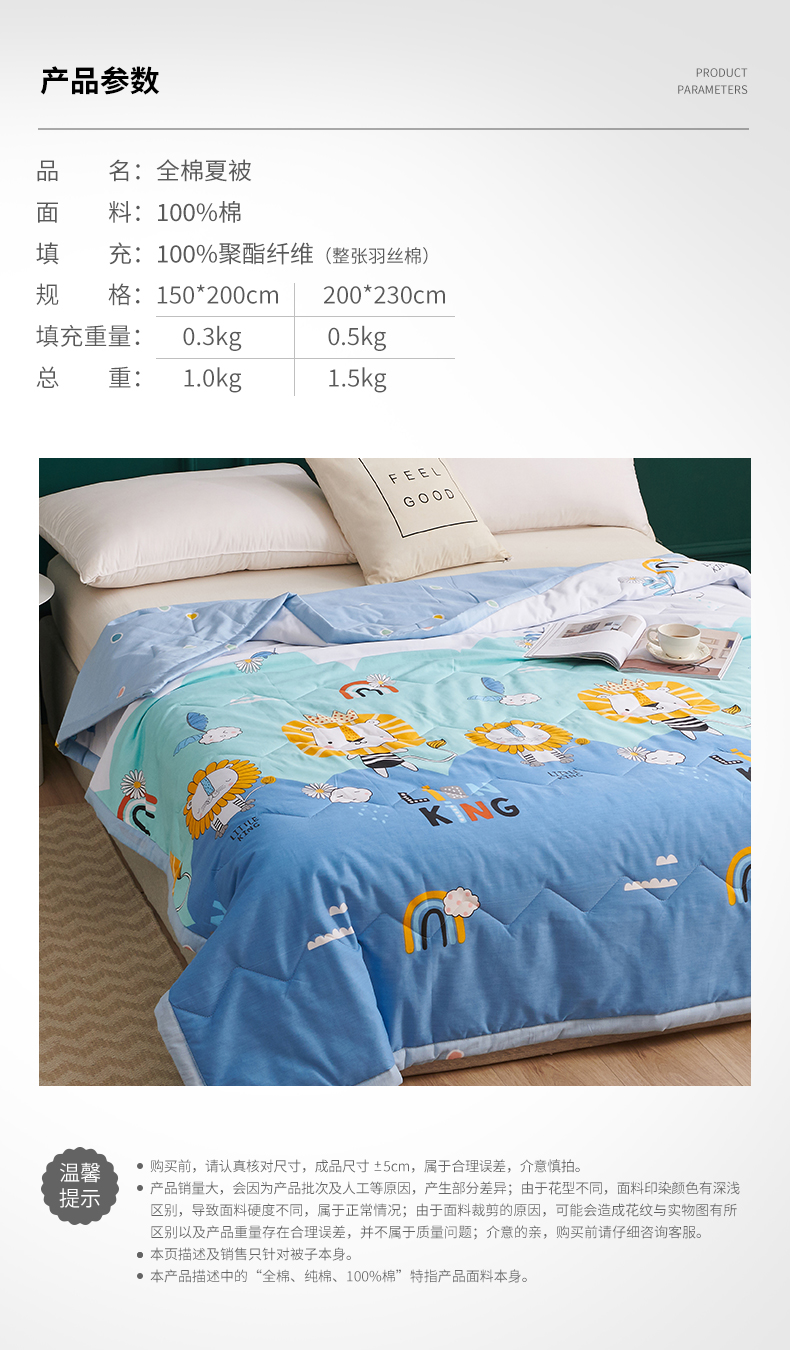 元元被业 2023款 全棉印花夏被 纯棉夏凉被 单人双人全棉空调被-小狮王