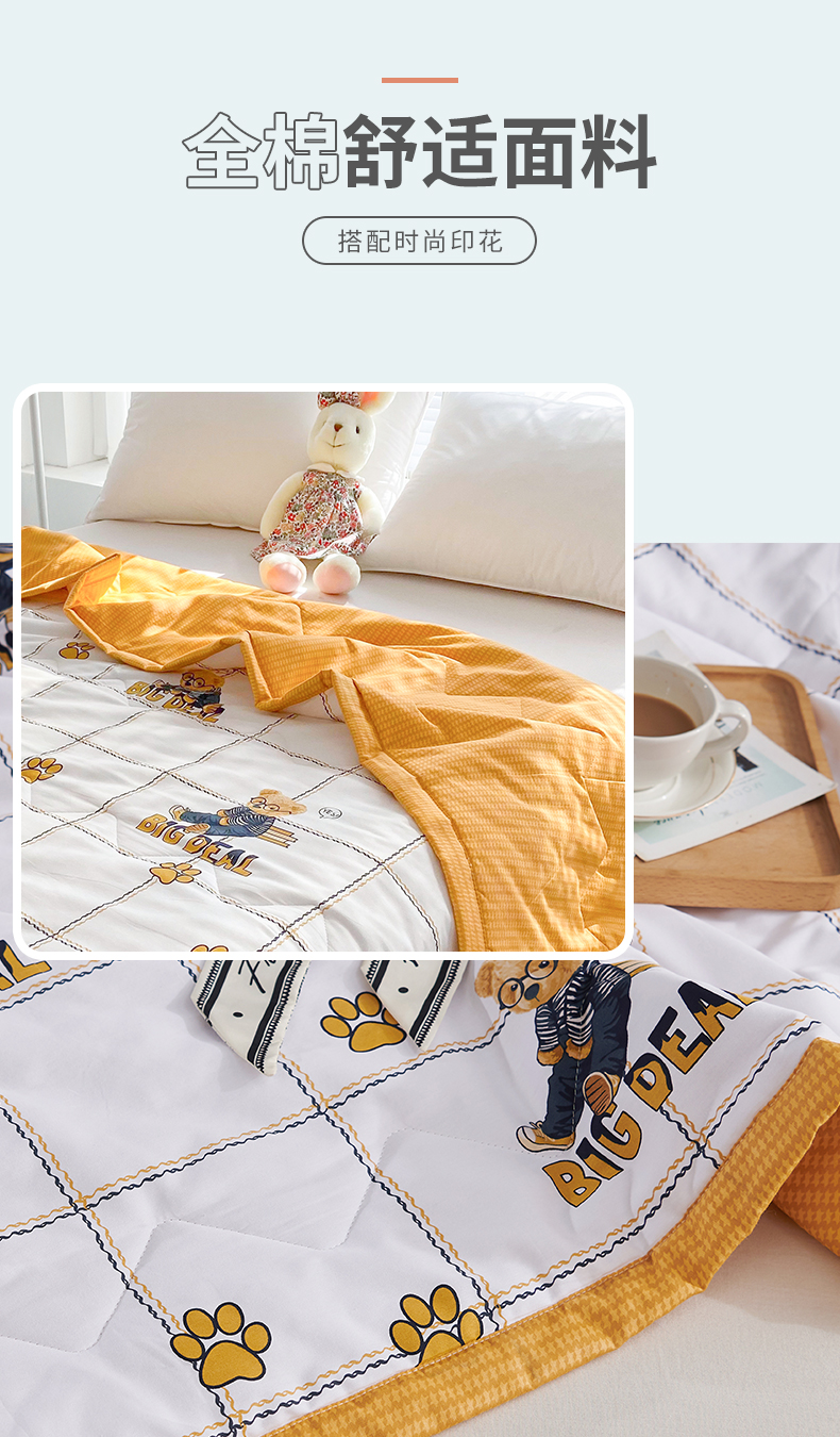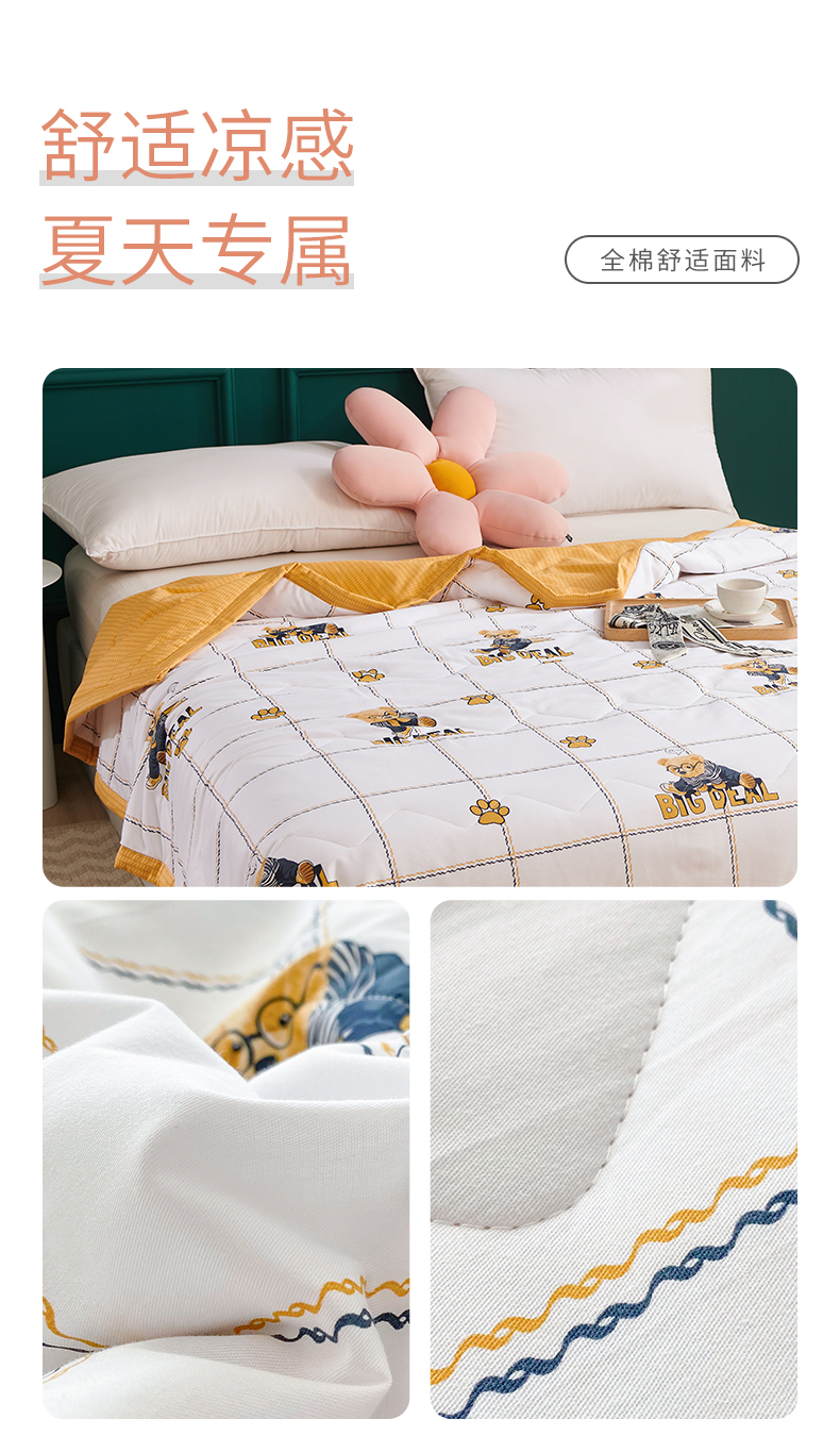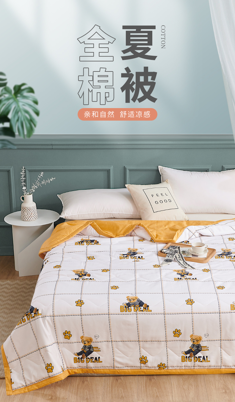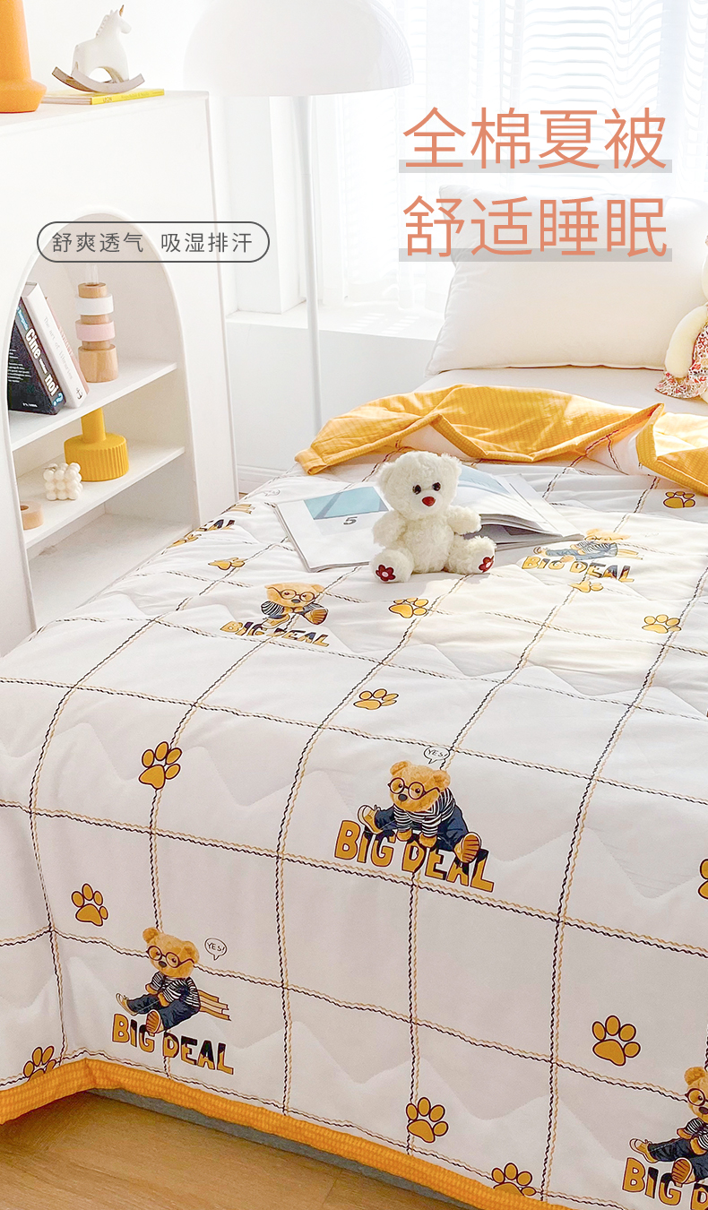 元元被业 2023款 全棉印花夏被 纯棉夏凉被 单人双人全棉空调被-格子熊