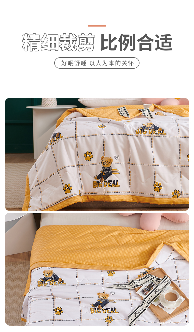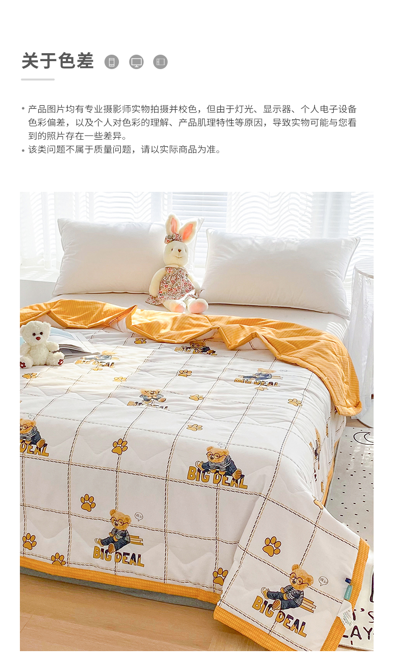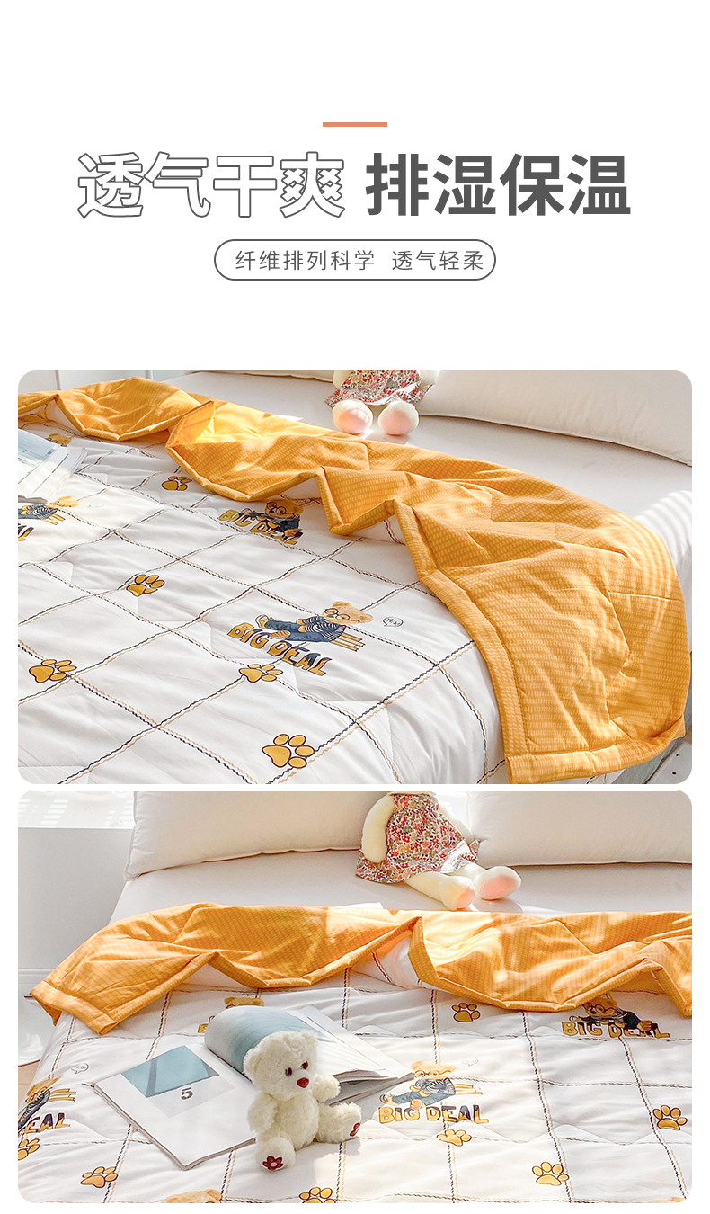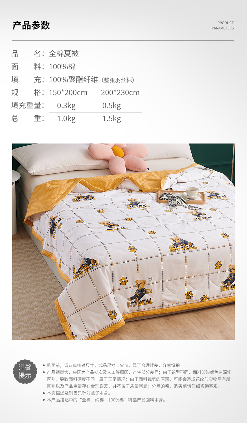 元元被业 2023款 全棉印花夏被 纯棉夏凉被 单人双人全棉空调被-格子熊