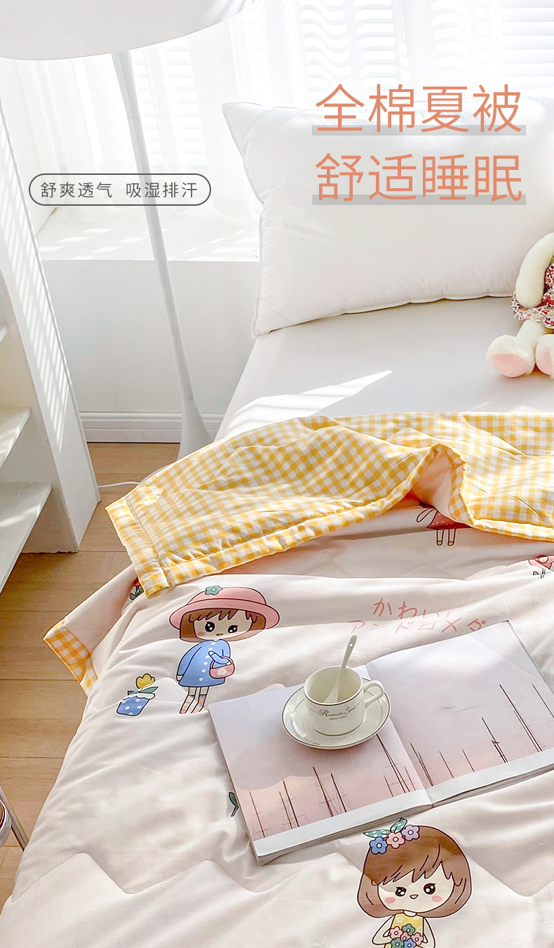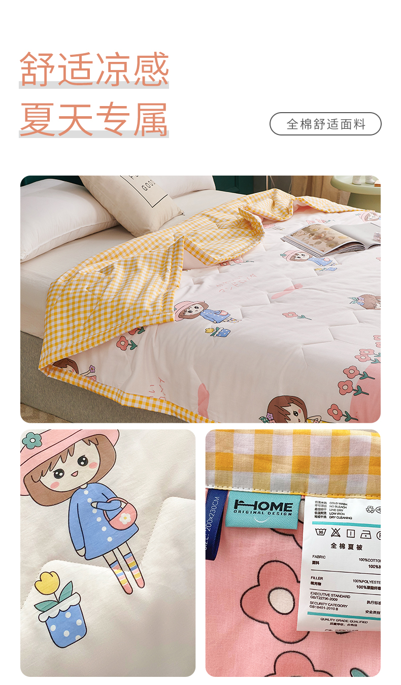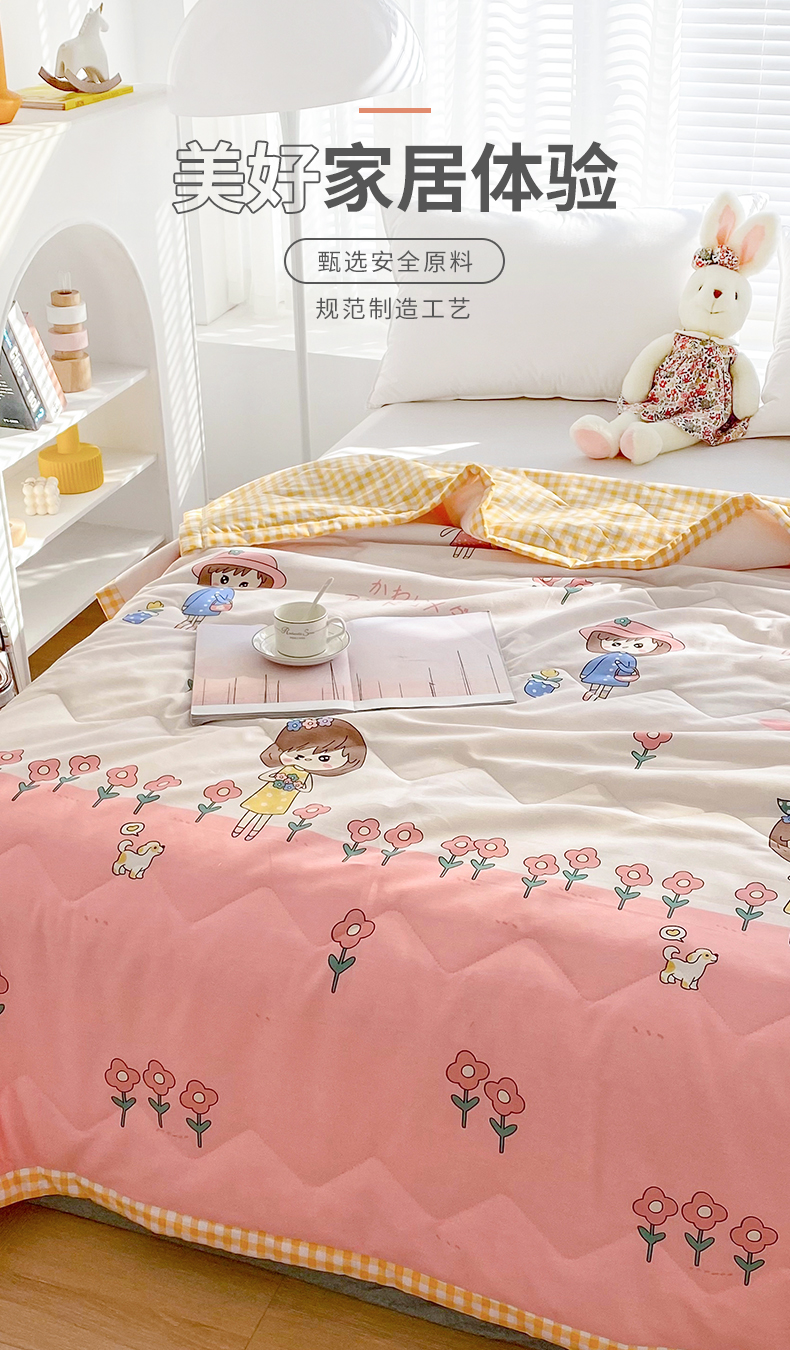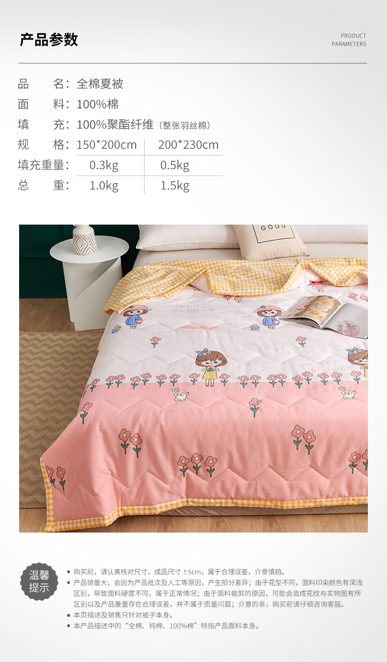 元元被业 2023款 全棉印花夏被 纯棉夏凉被 单人双人全棉空调被-花田女孩