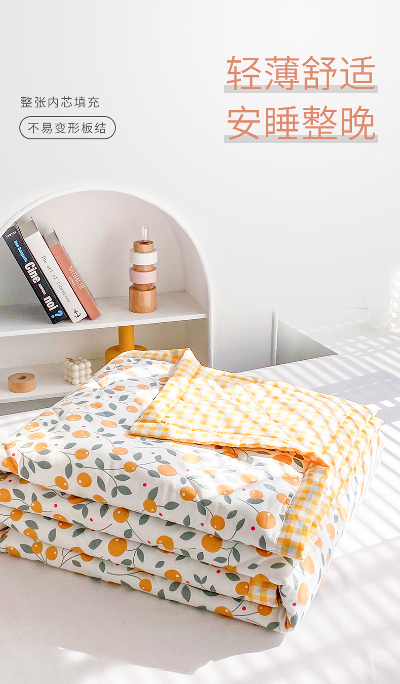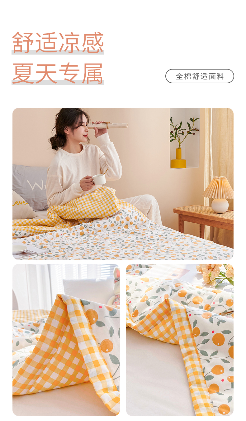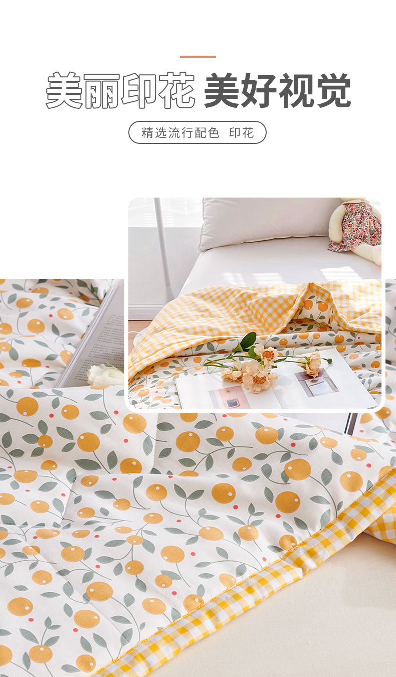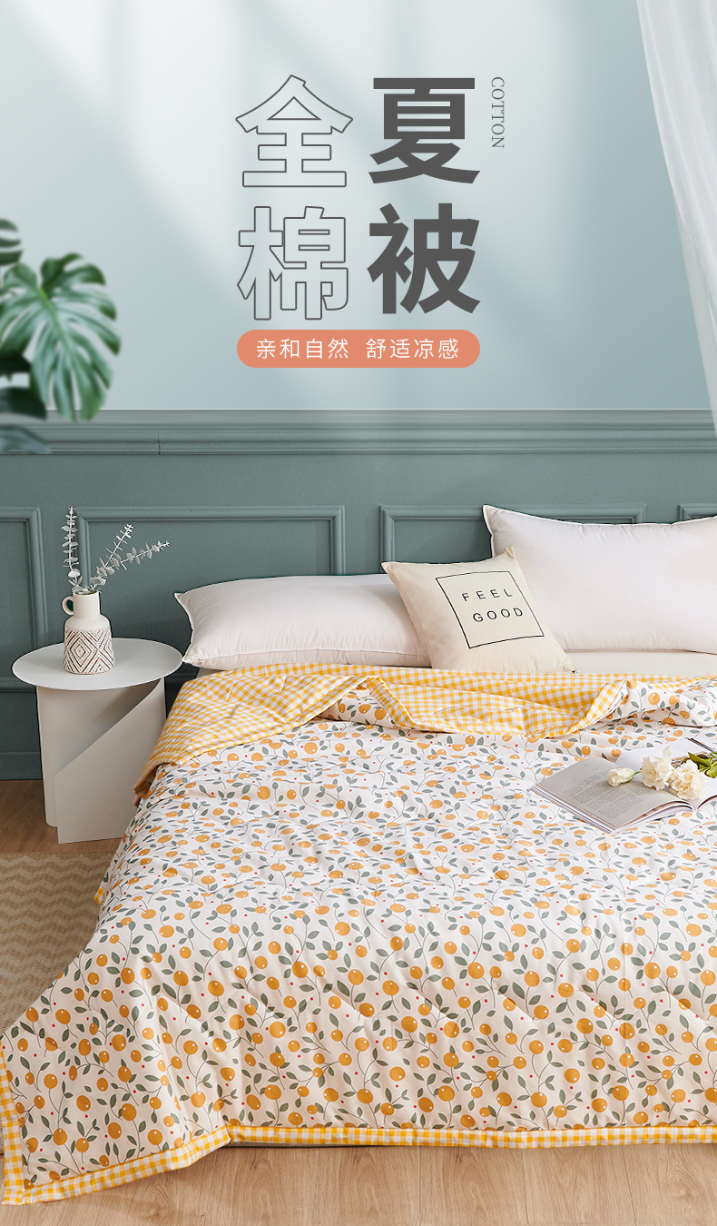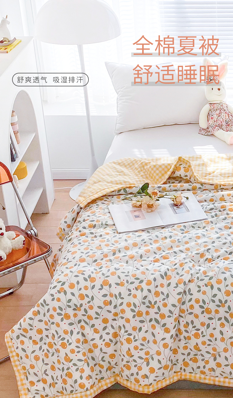 元元被业 2023款 全棉印花夏被 纯棉夏凉被 单人双人全棉空调被-甜蜜桔