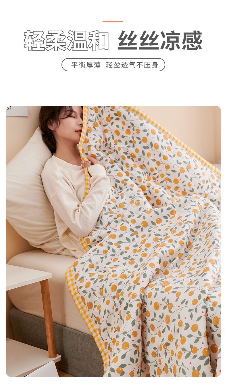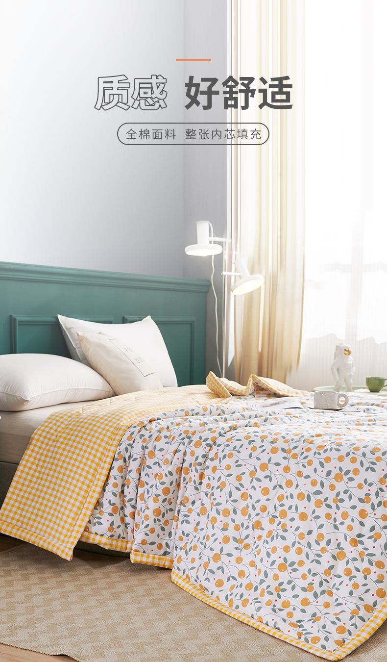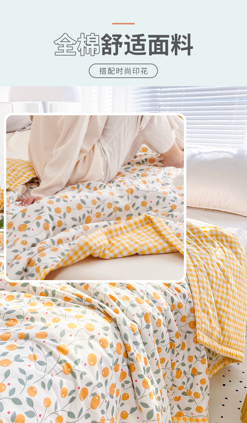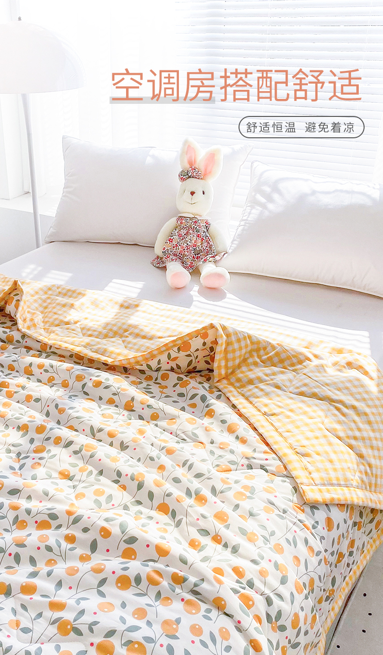元元被业 2023款 全棉印花夏被 纯棉夏凉被 单人双人全棉空调被-甜蜜桔