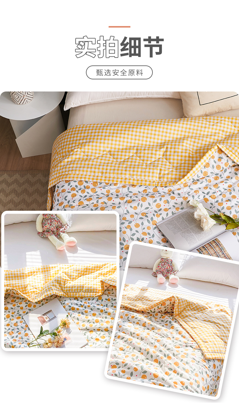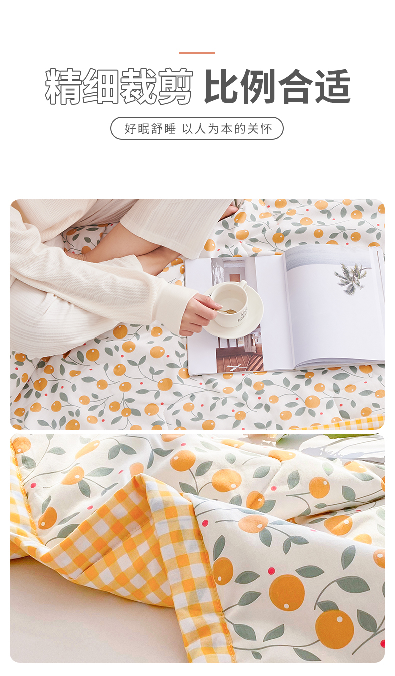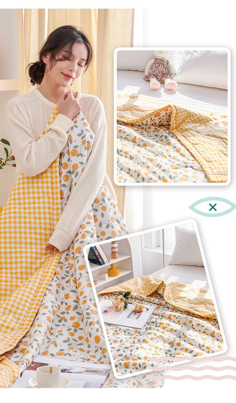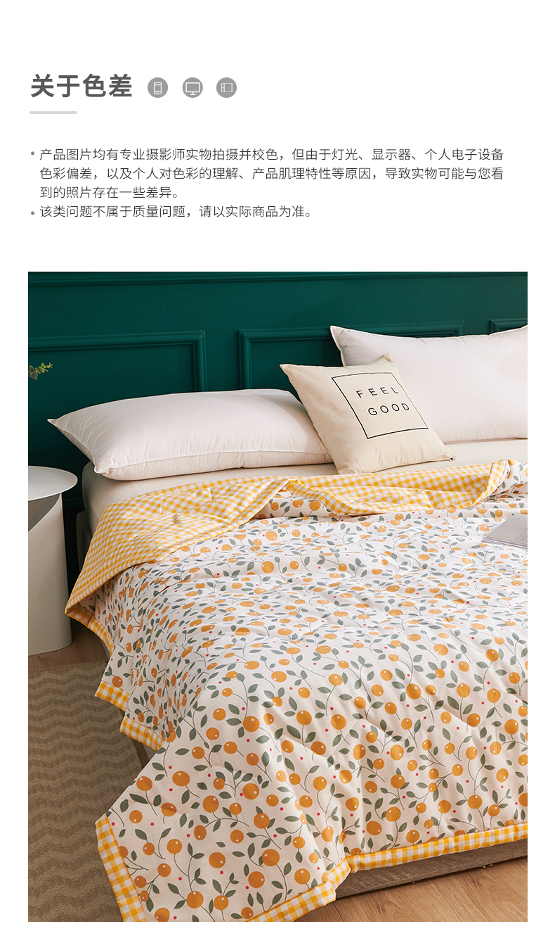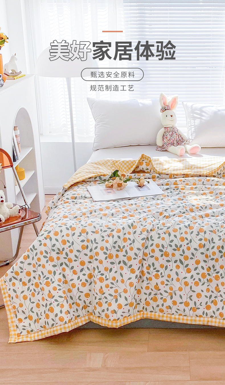 元元被业 2023款 全棉印花夏被 纯棉夏凉被 单人双人全棉空调被-甜蜜桔