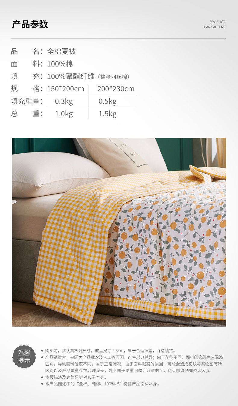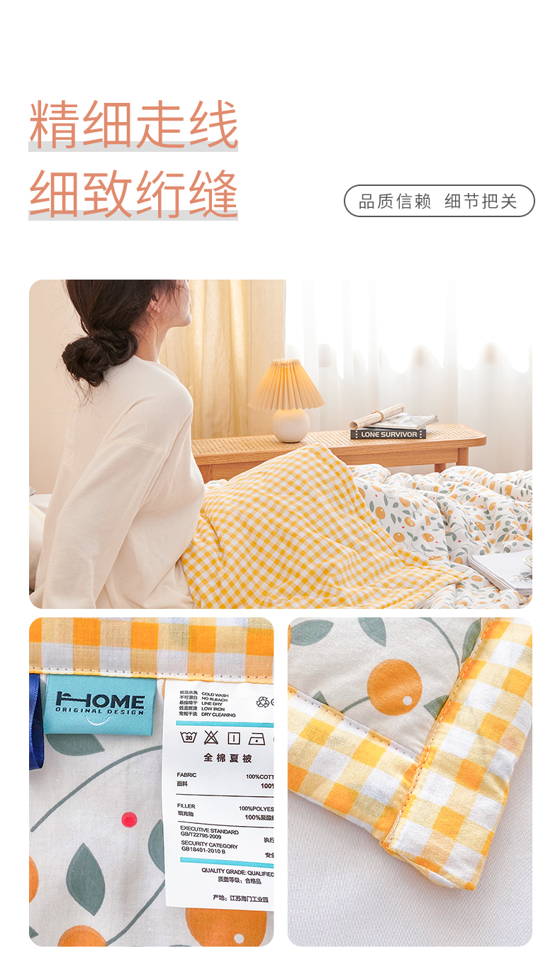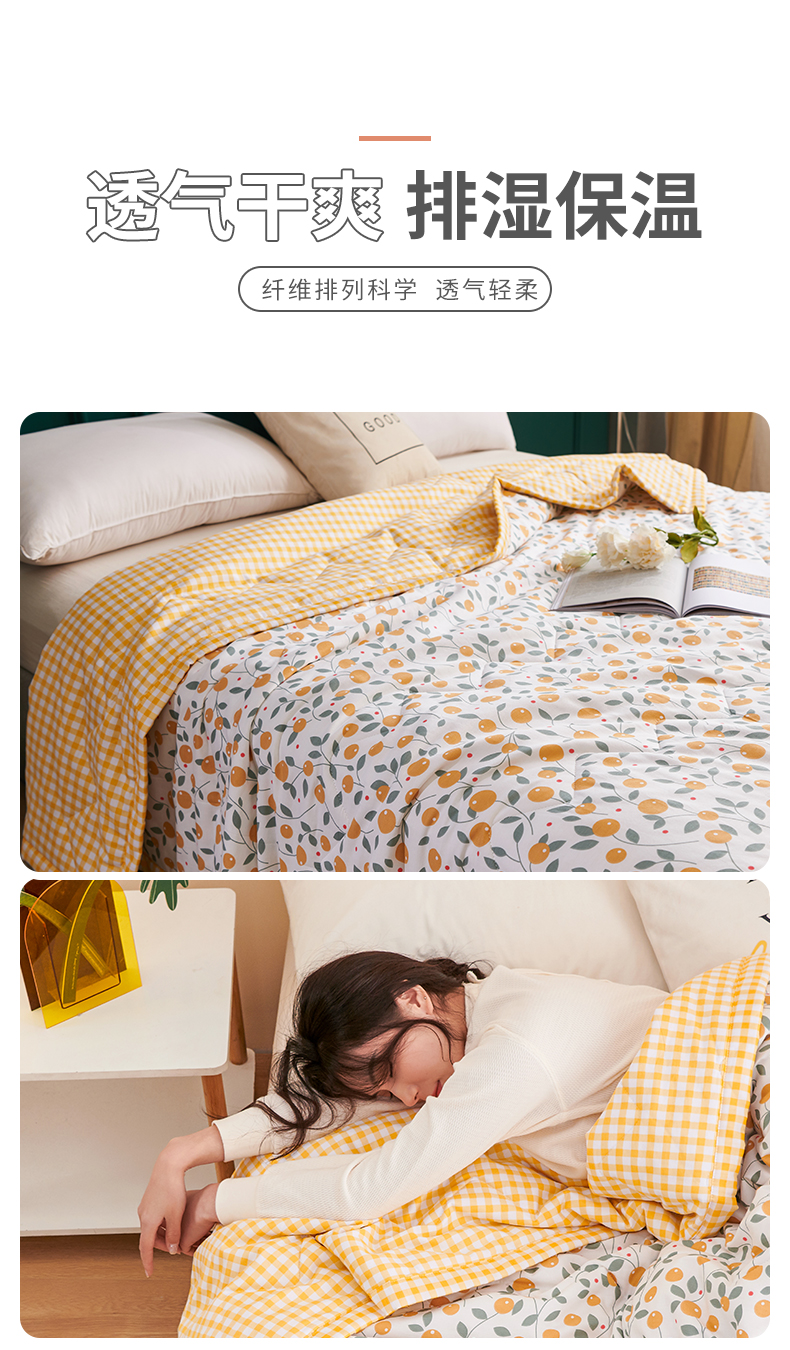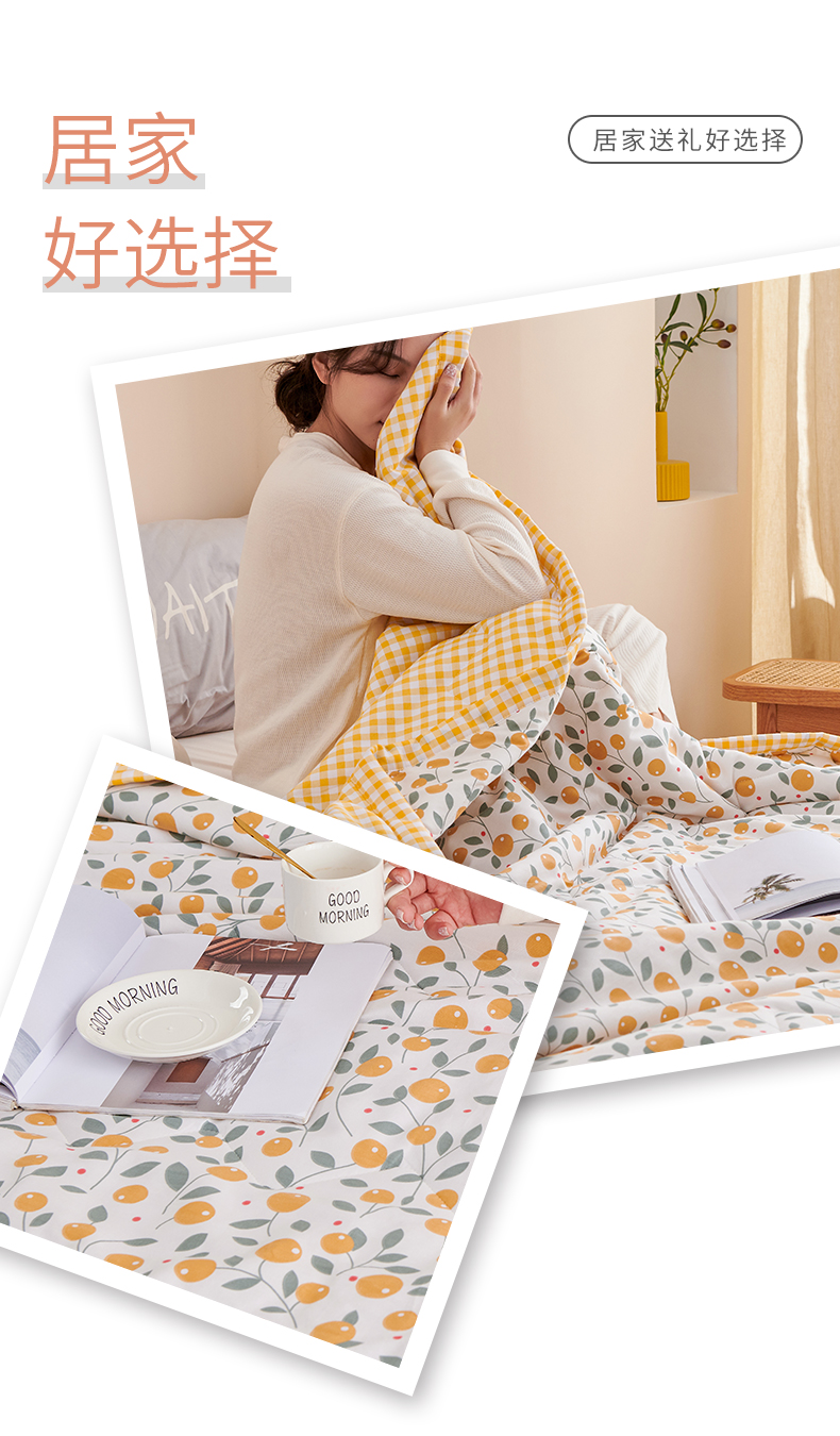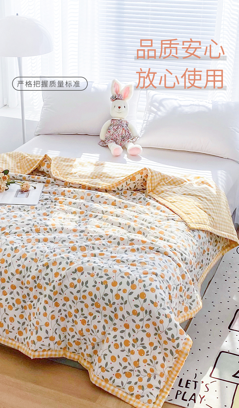 元元被业 2023款 全棉印花夏被 纯棉夏凉被 单人双人全棉空调被-甜蜜桔