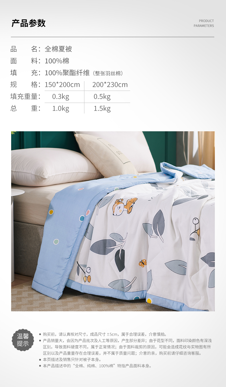 元元被业 2023款 全棉印花夏被 纯棉夏凉被 单人双人全棉空调被-林中鹿