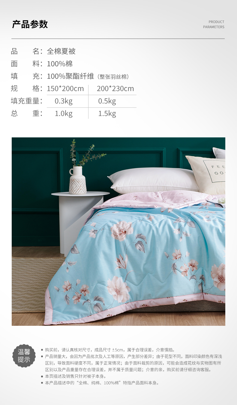 元元被业 2023款 全棉印花夏被 纯棉夏凉被 单人双人全棉空调被-繁 花