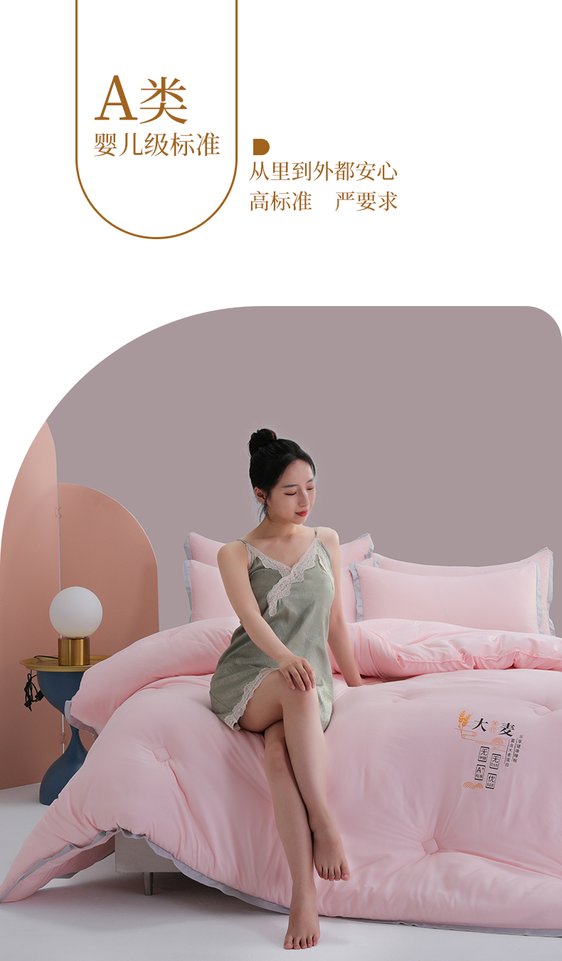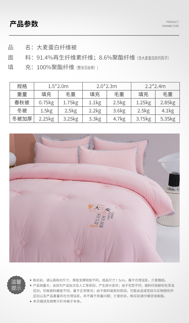 元元被业 2022款 大麦蛋白纤维被 A类亲肤级 春秋被 加厚冬被-浅粉色