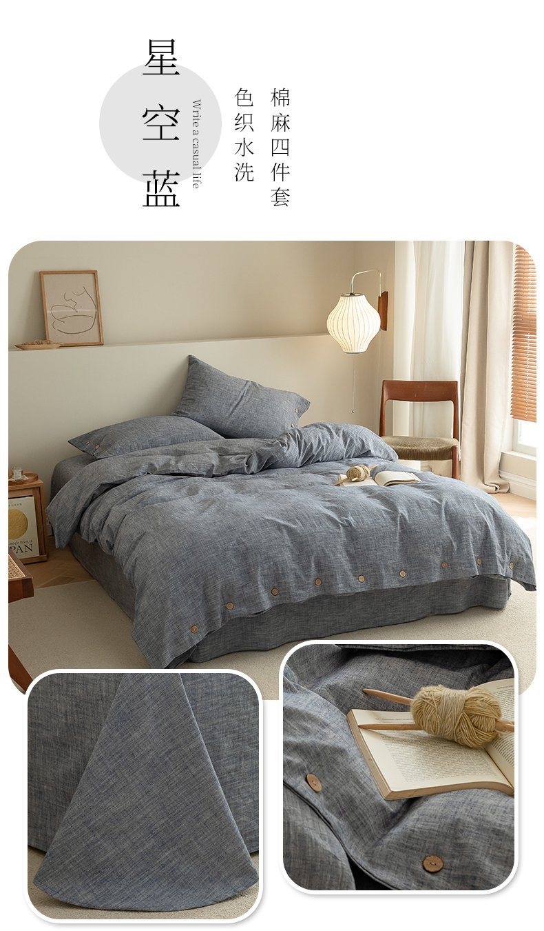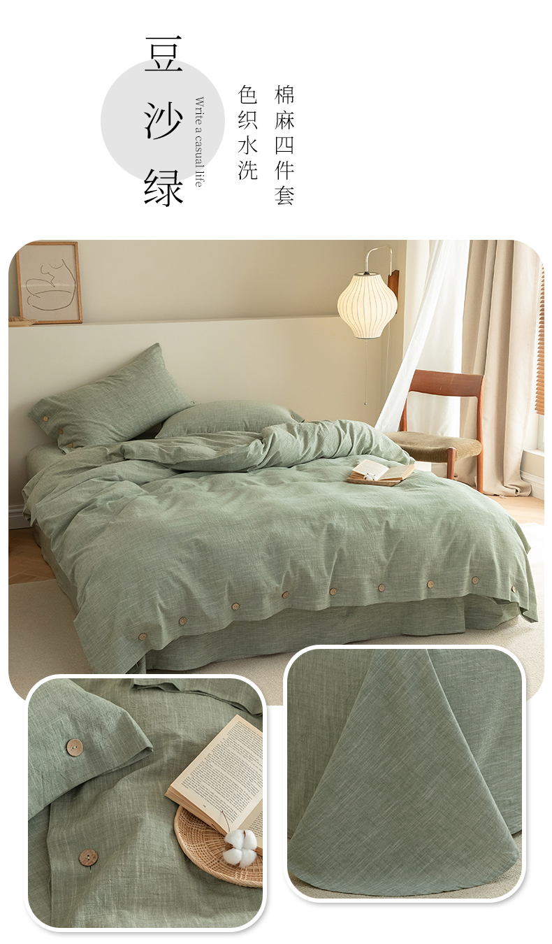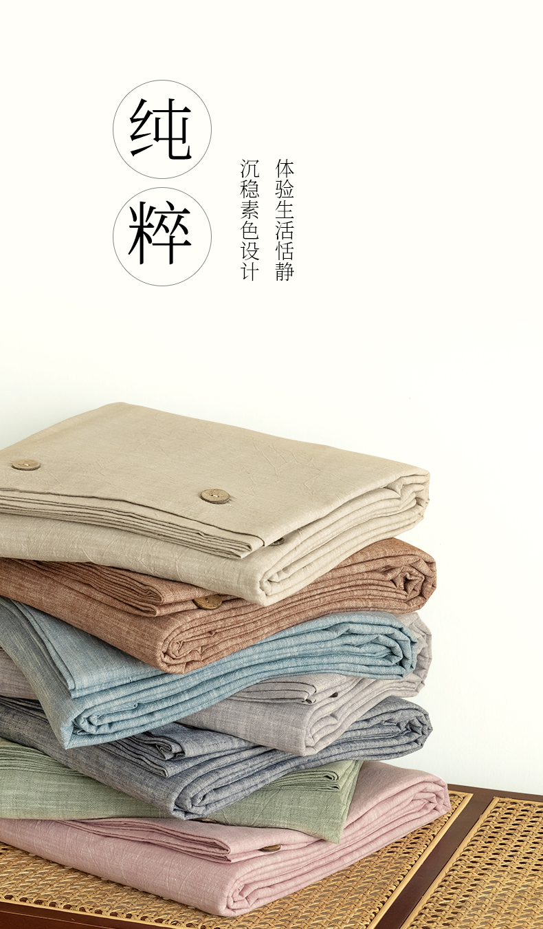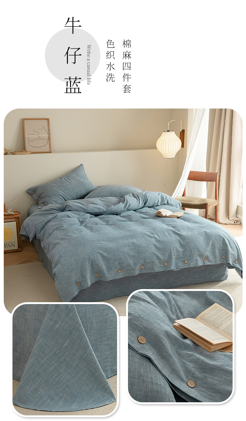 元元被业 色织水洗棉麻四件套 四季通用 85%棉 15%麻 7个颜色