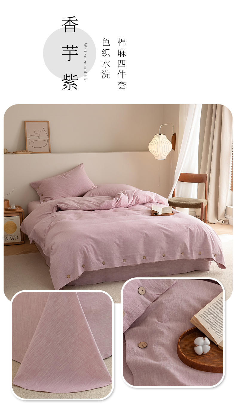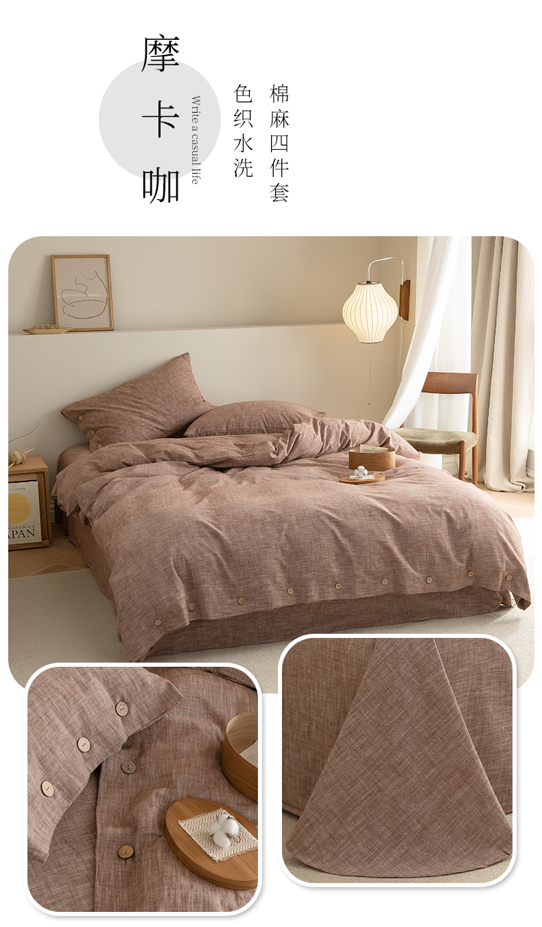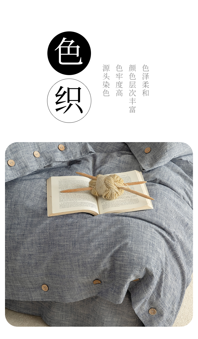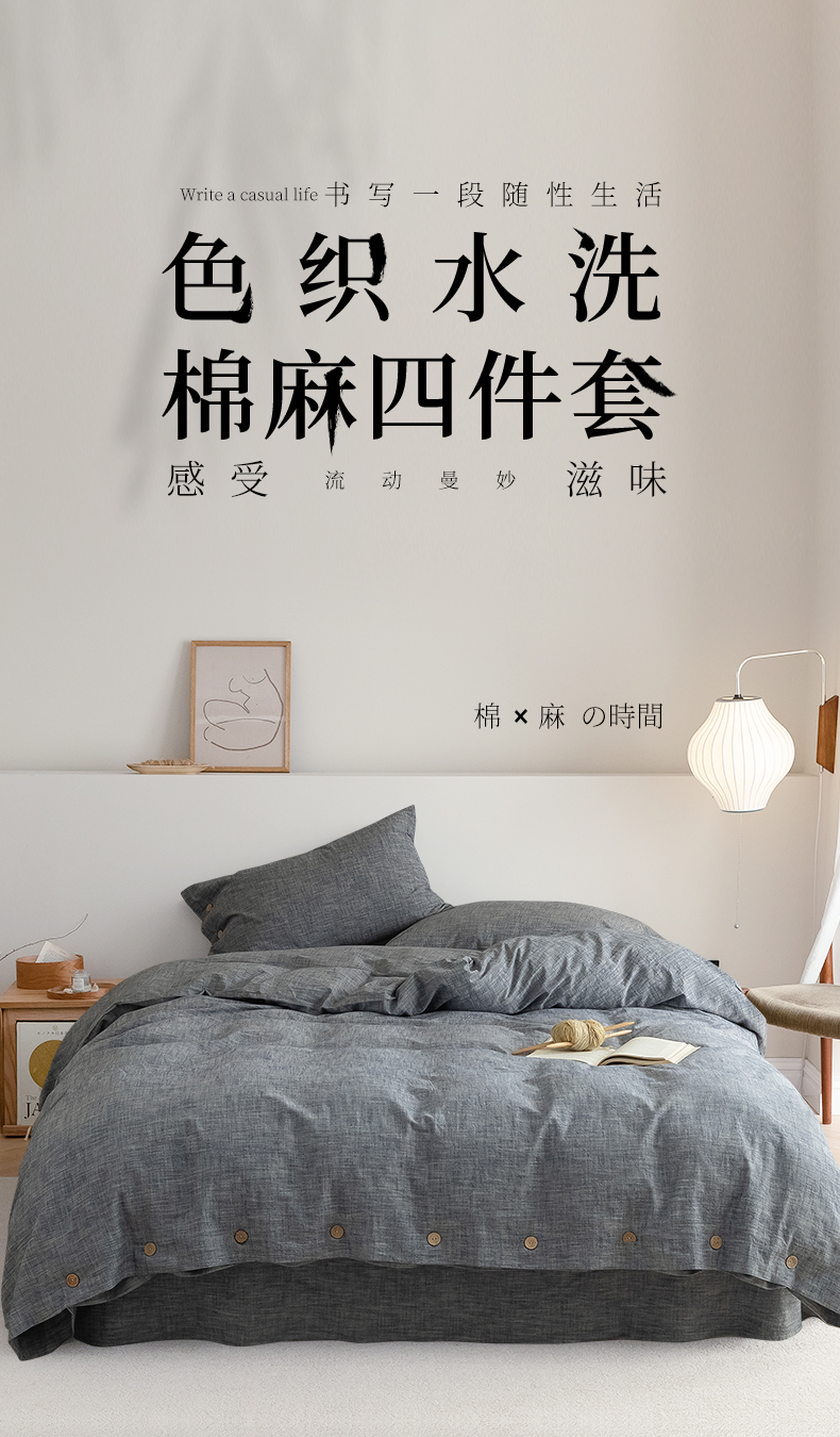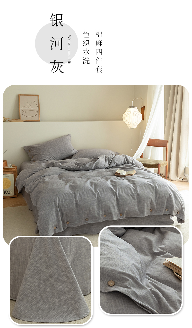 元元被业 色织水洗棉麻四件套 四季通用 85%棉 15%麻 7个颜色