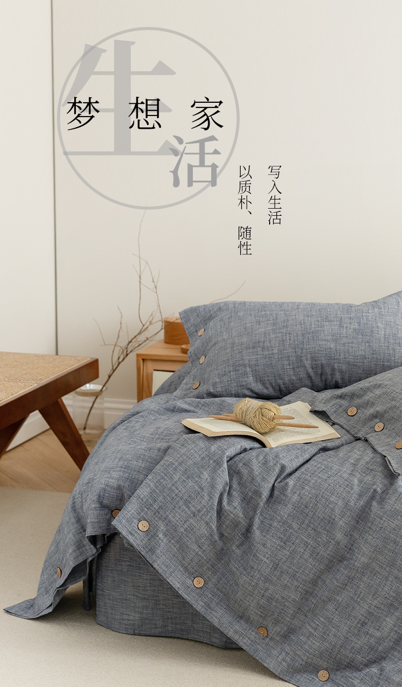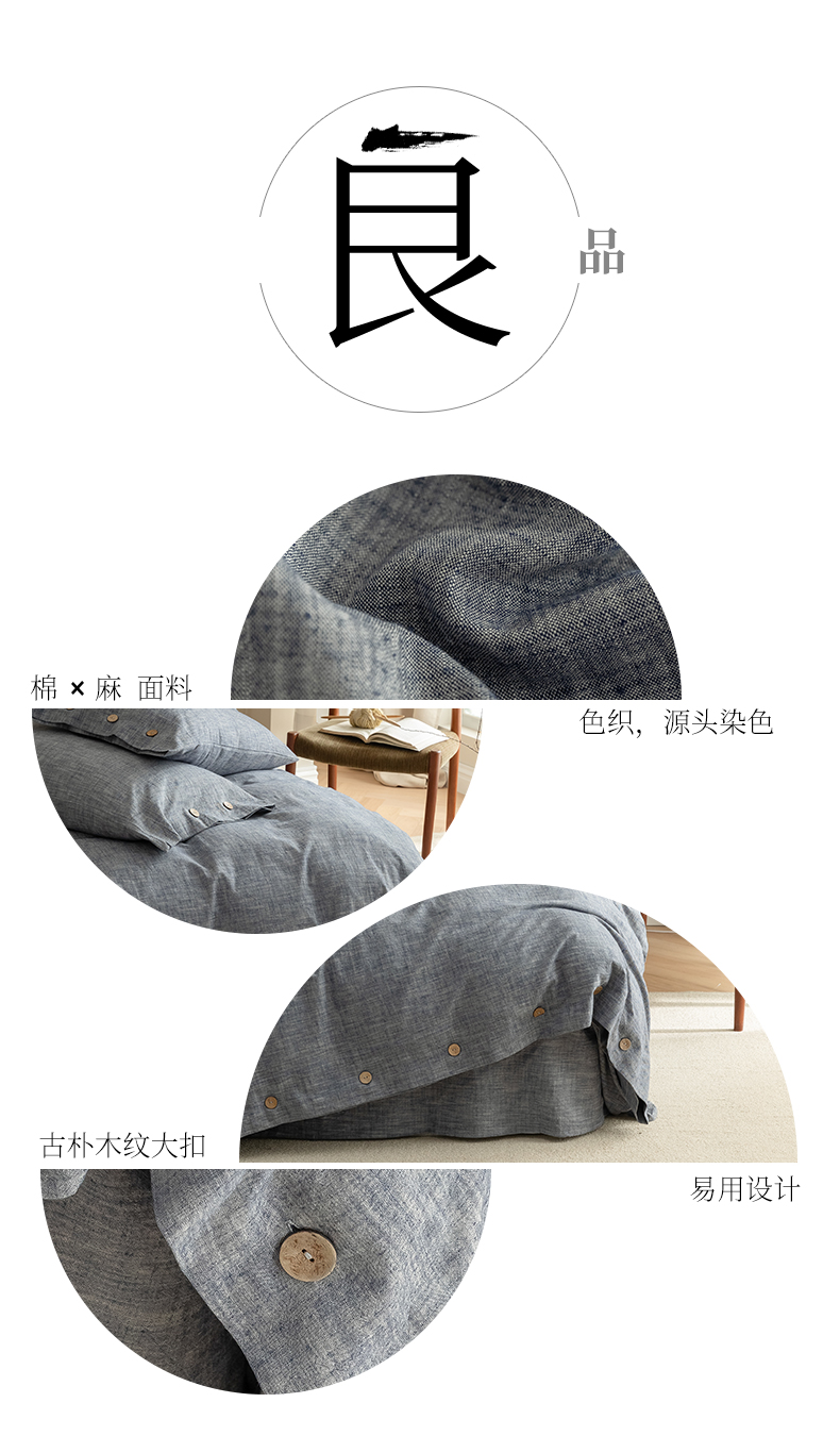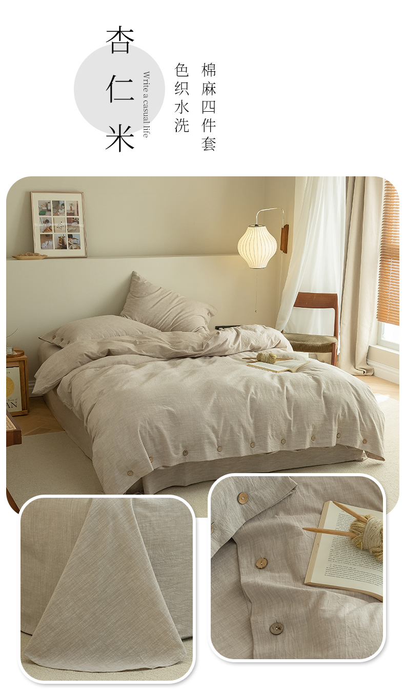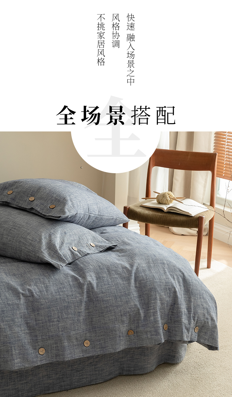 元元被业 色织水洗棉麻四件套 四季通用 85%棉 15%麻 7个颜色