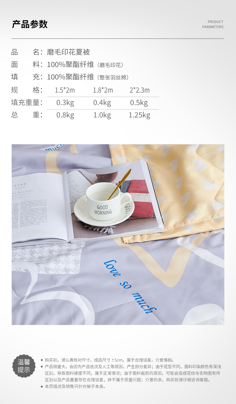 产品分类:磨毛印花夏被
