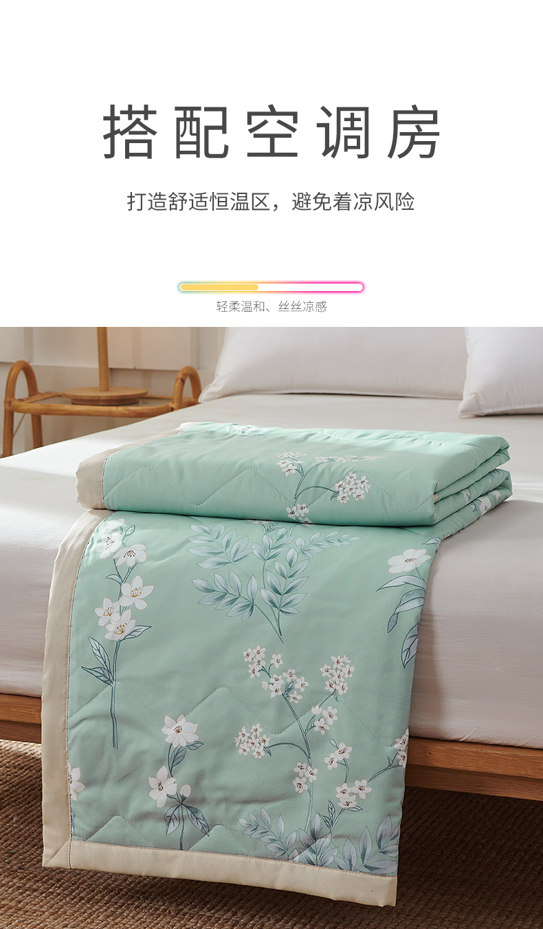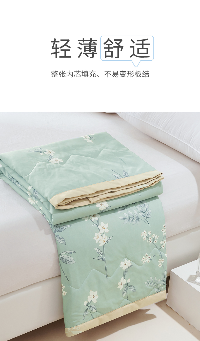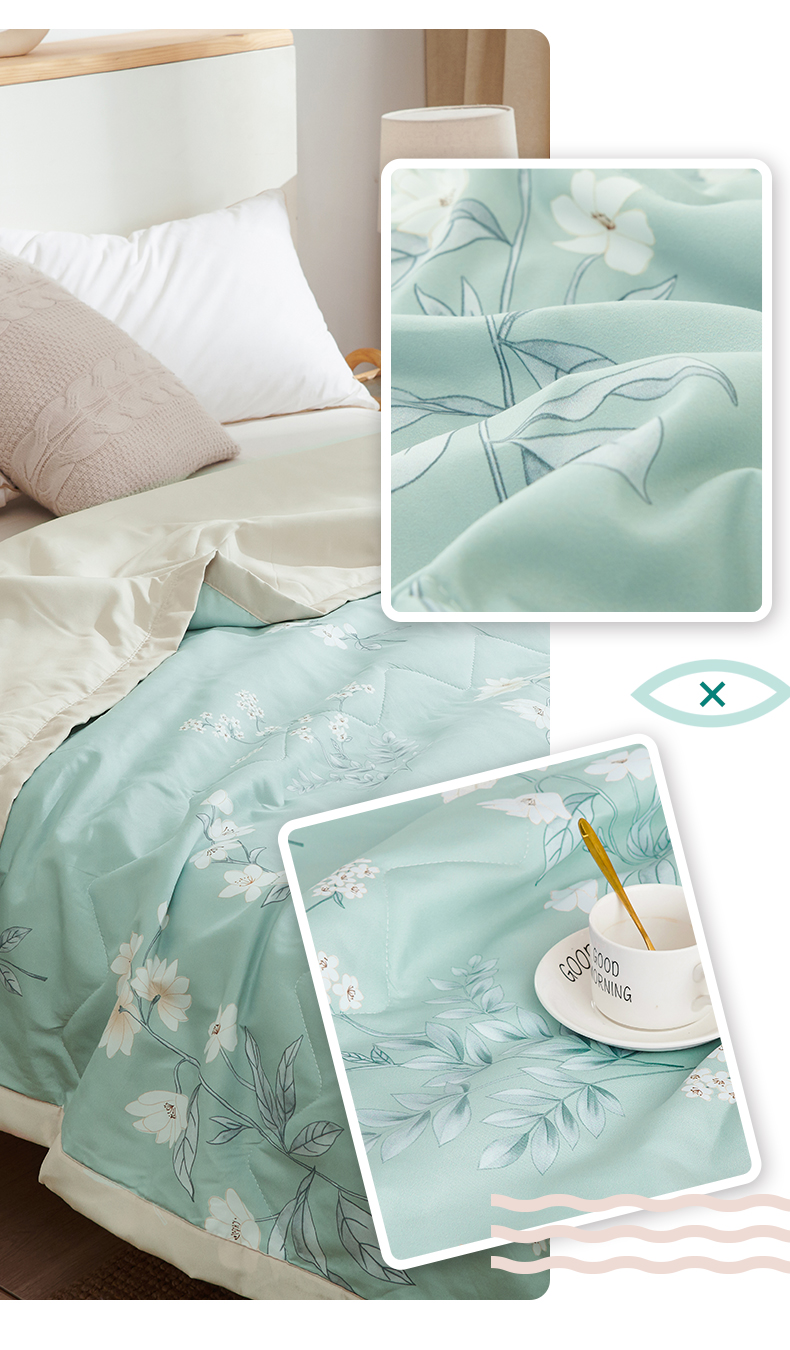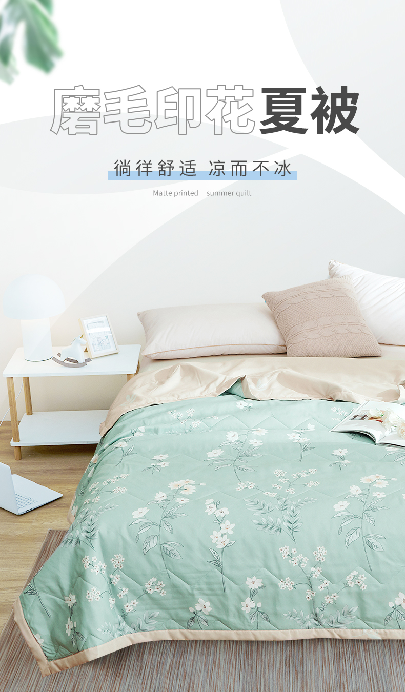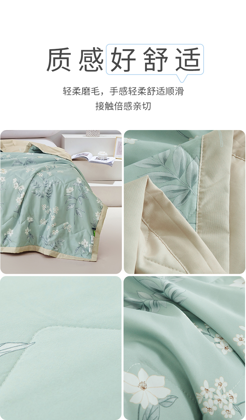 元元被业 2025款 磨毛印花夏被 单双人空调被 促销爆款夏凉被-丁香-绿色