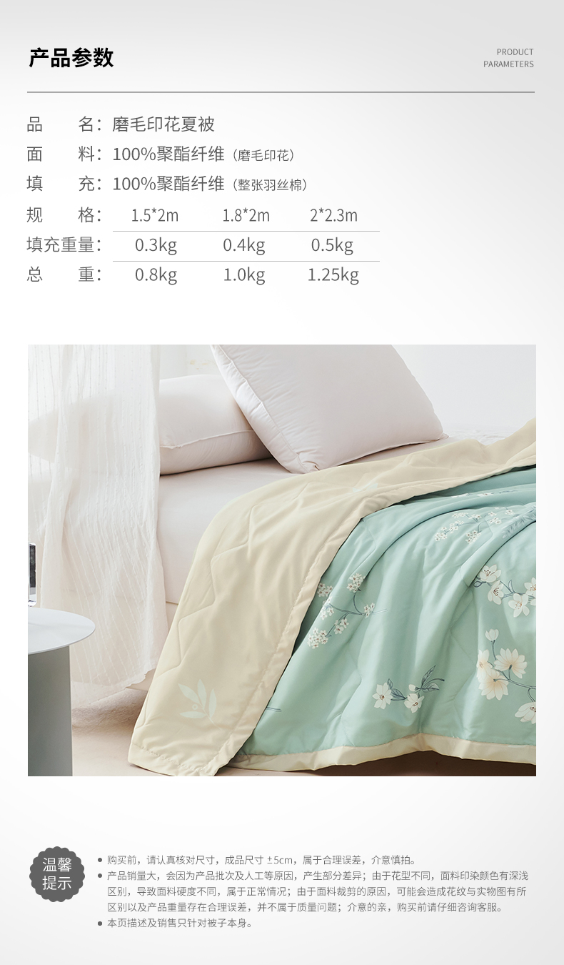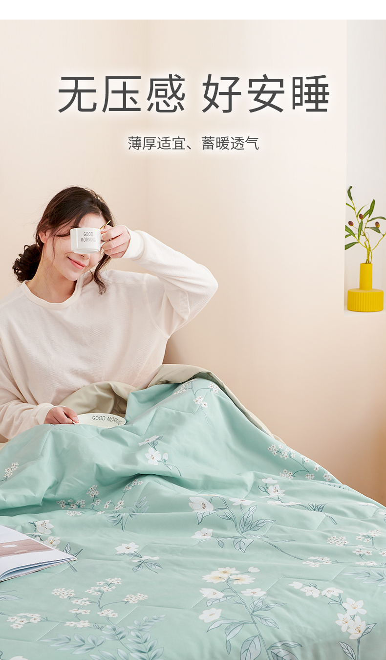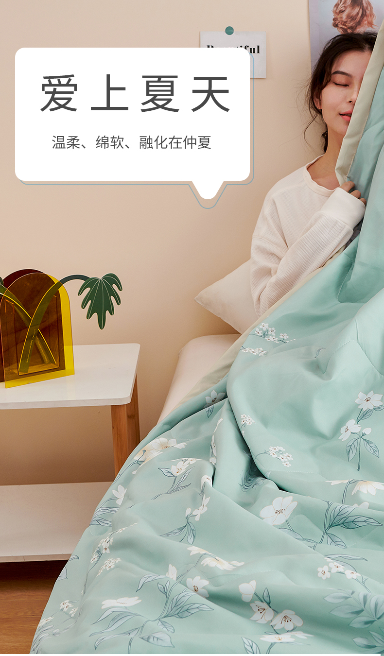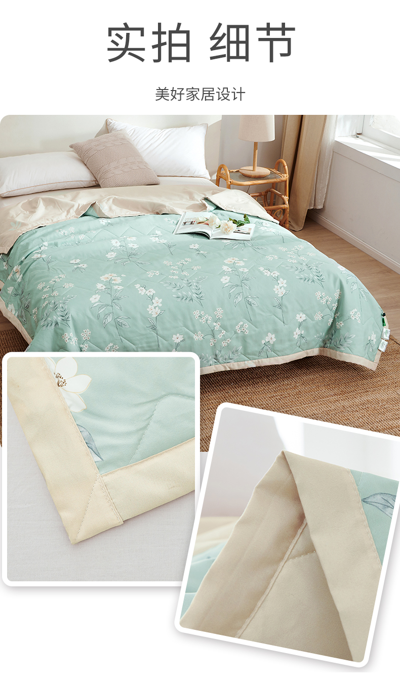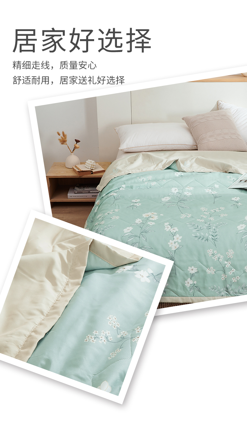 元元被业 2025款 磨毛印花夏被 单双人空调被 促销爆款夏凉被-丁香-绿色