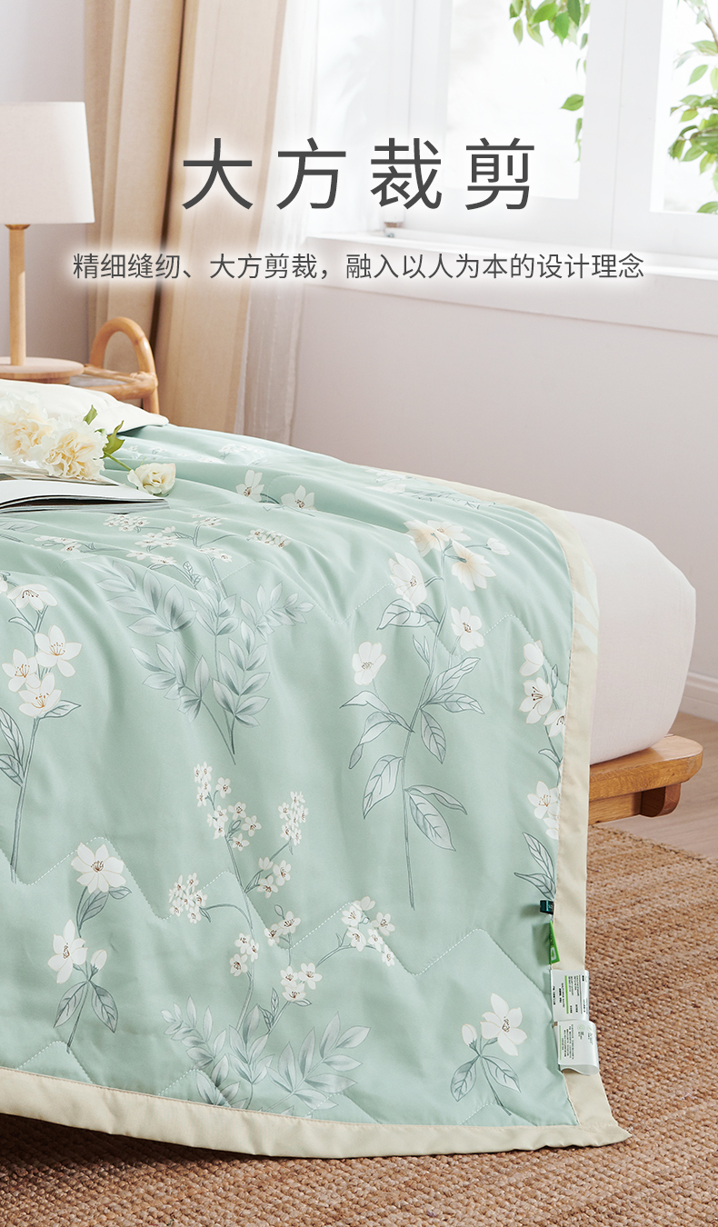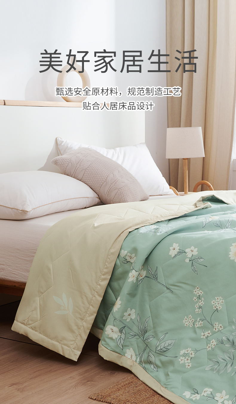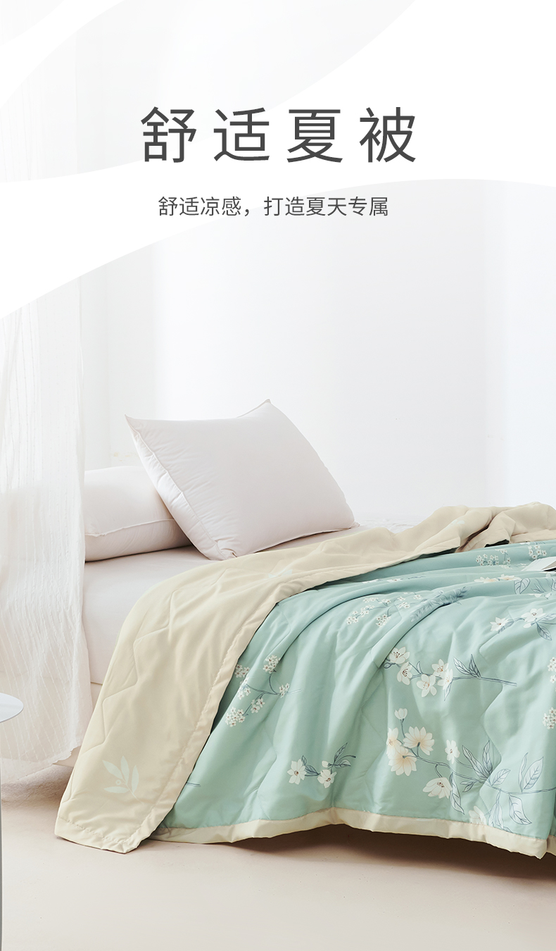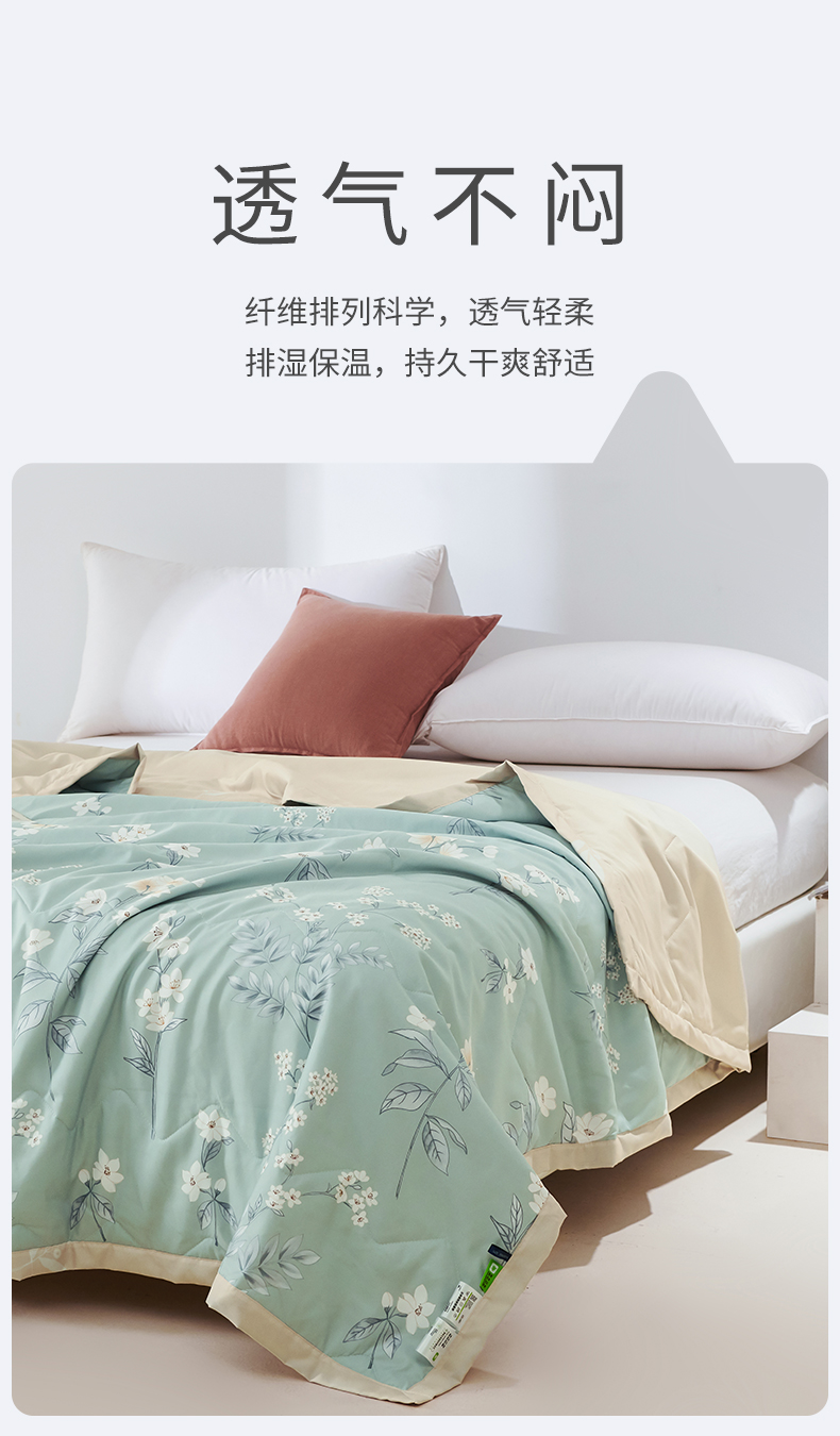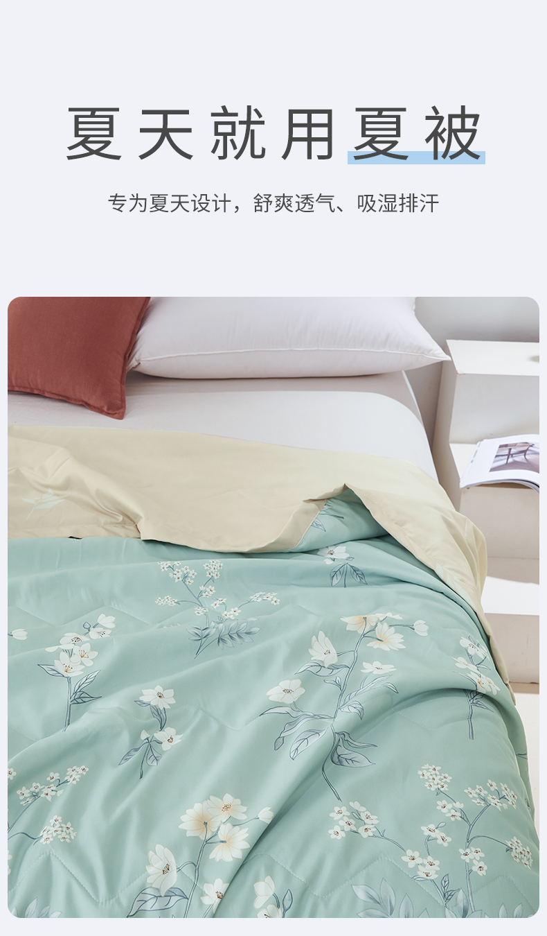 元元被业 2025款 磨毛印花夏被 单双人空调被 促销爆款夏凉被-丁香-绿色