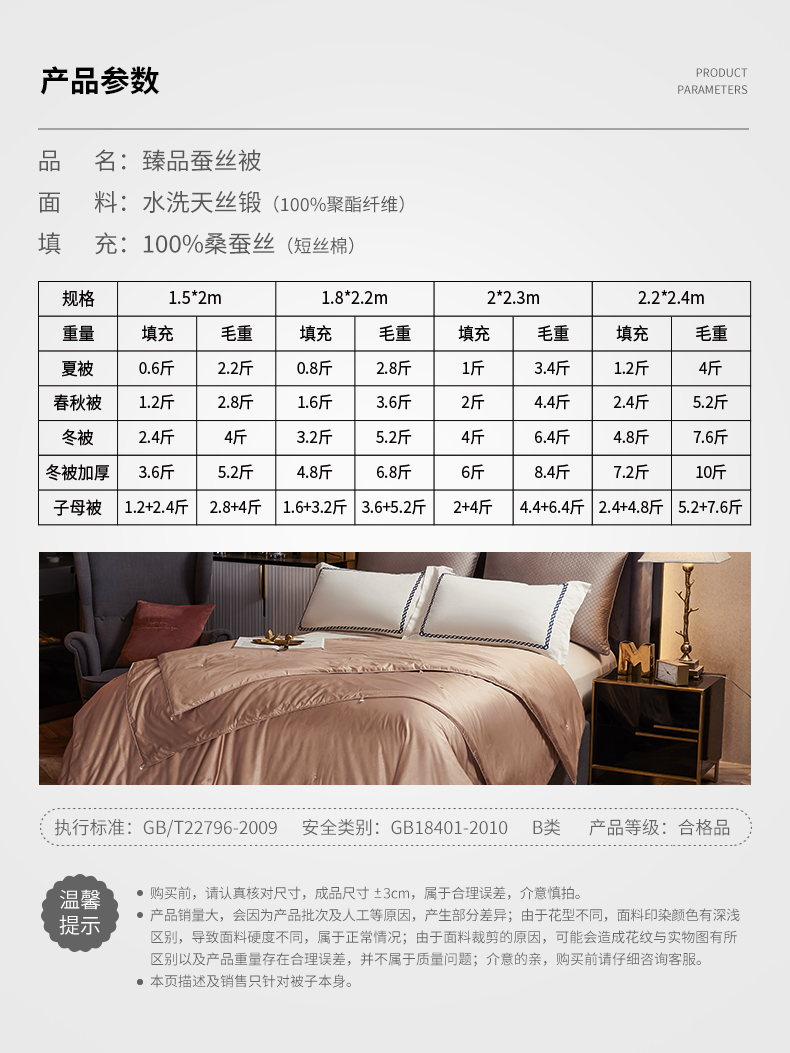 元元被业 臻品蚕丝被 100%桑蚕丝被 多尺寸多重量 春夏秋冬被 子母被
