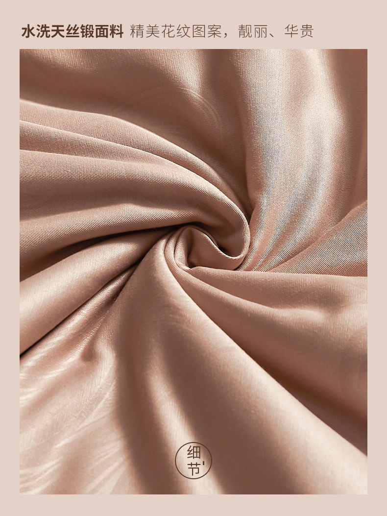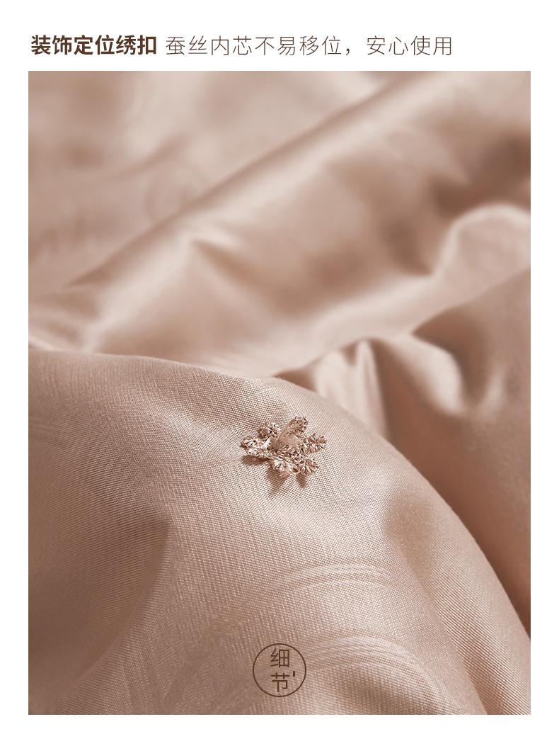 成份工艺:水洗天丝压花 100%桑蚕丝短丝 手工钉花