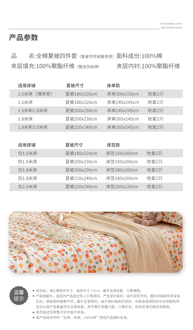 产品分类:夹棉被套=夏被【两用款全棉四件套】