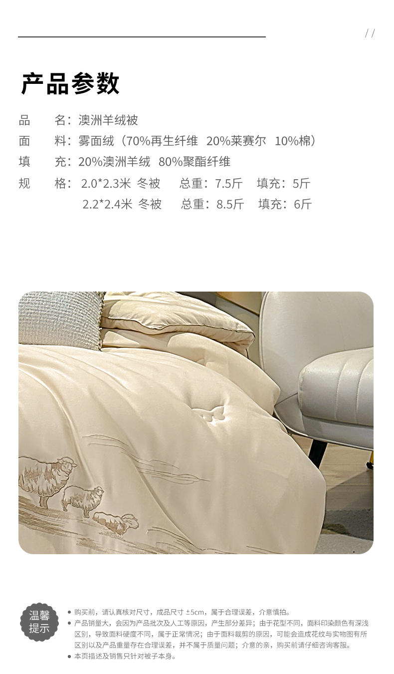 元元被业 钮花款90%白鸭绒-80柔赛丝-羽绒被