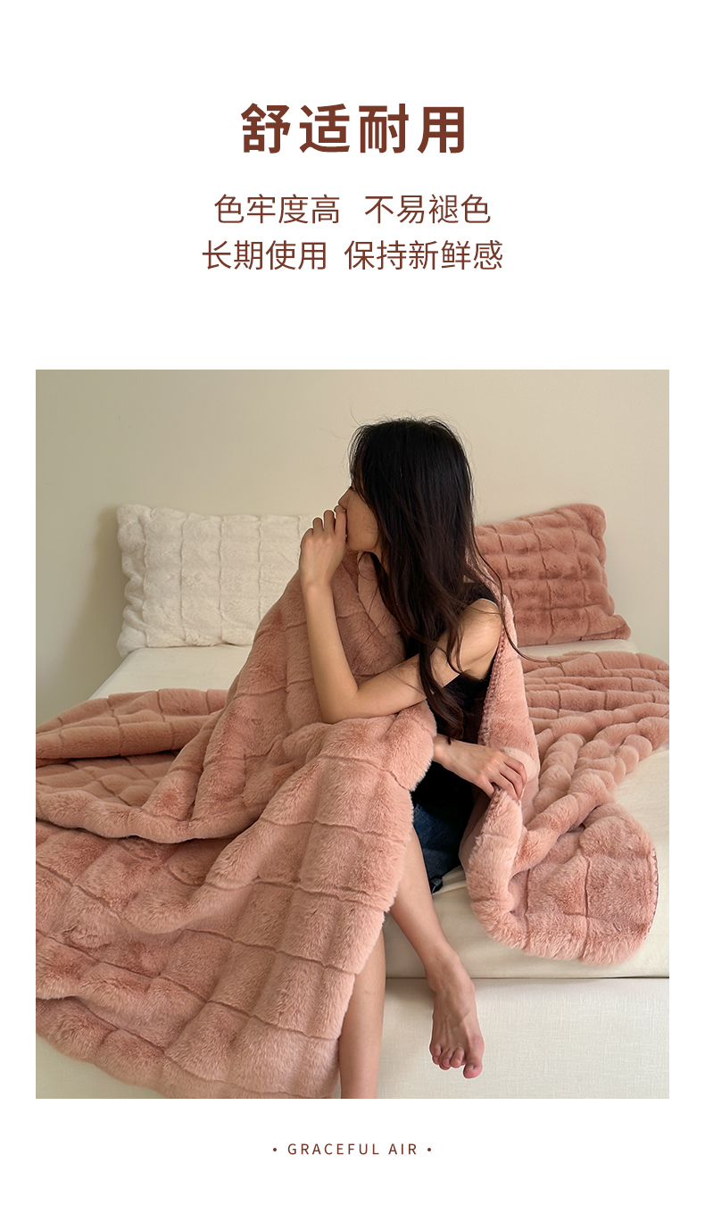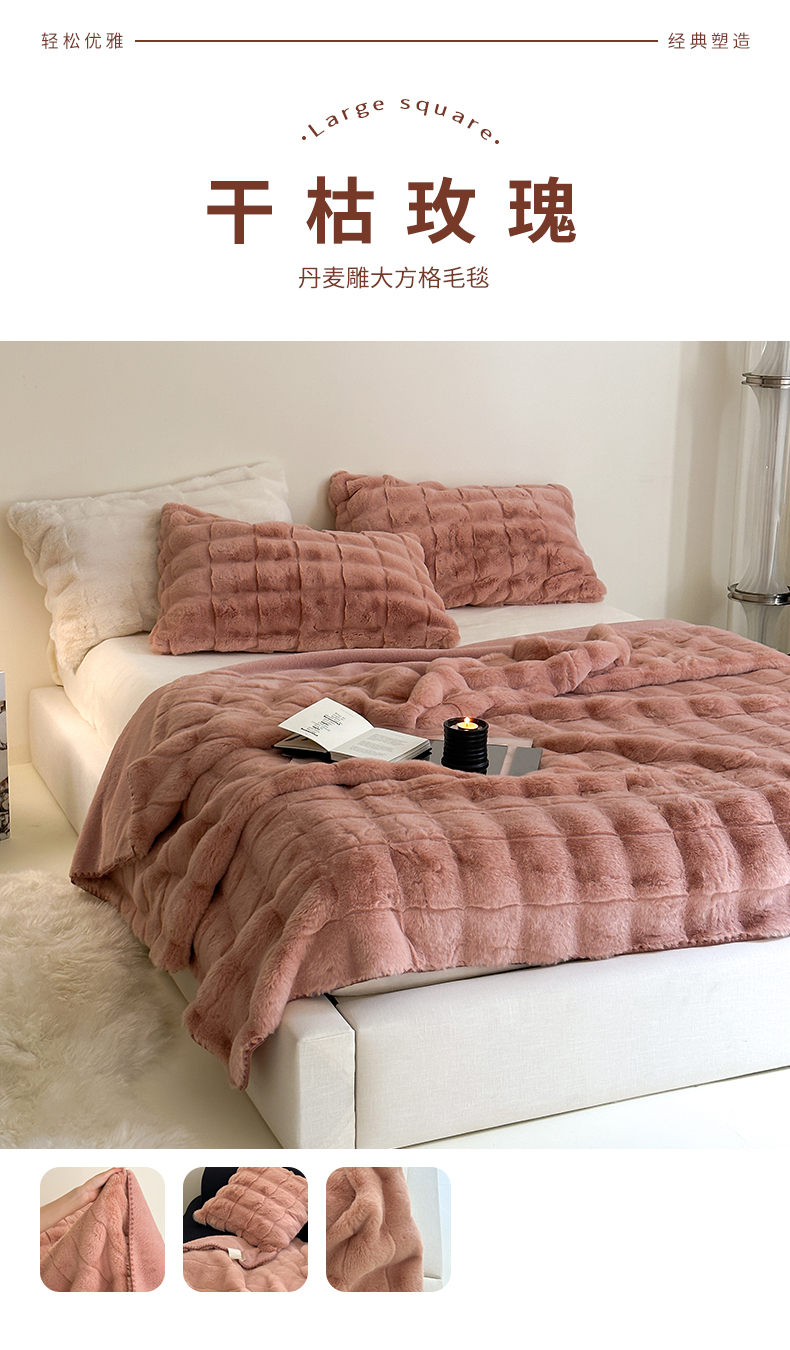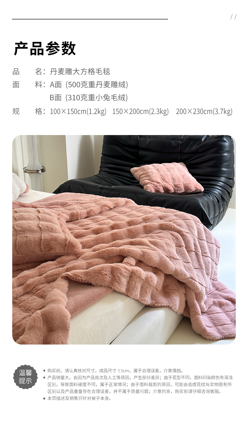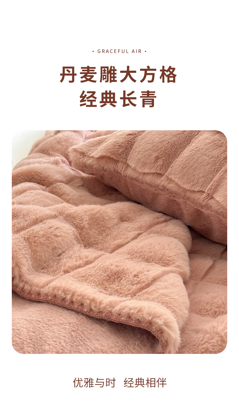 元元家居 丹麦雕大方格毛毯 A面为500克重丹麦雕皮草B面升级为310克重小兔毛