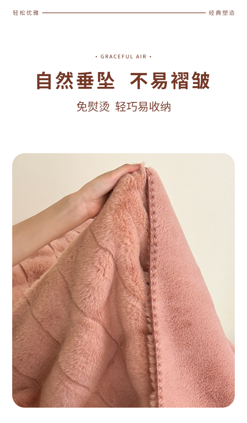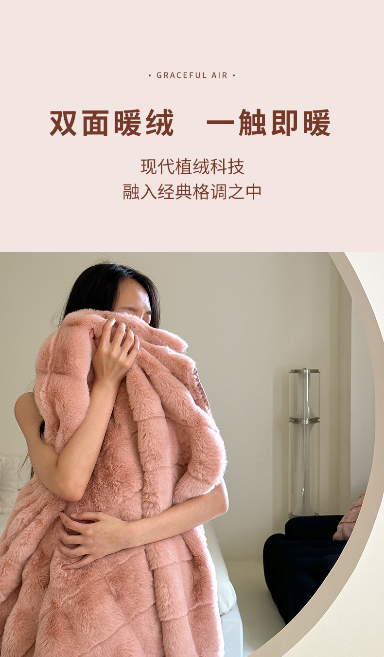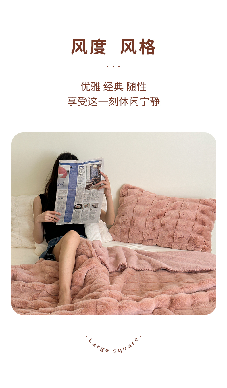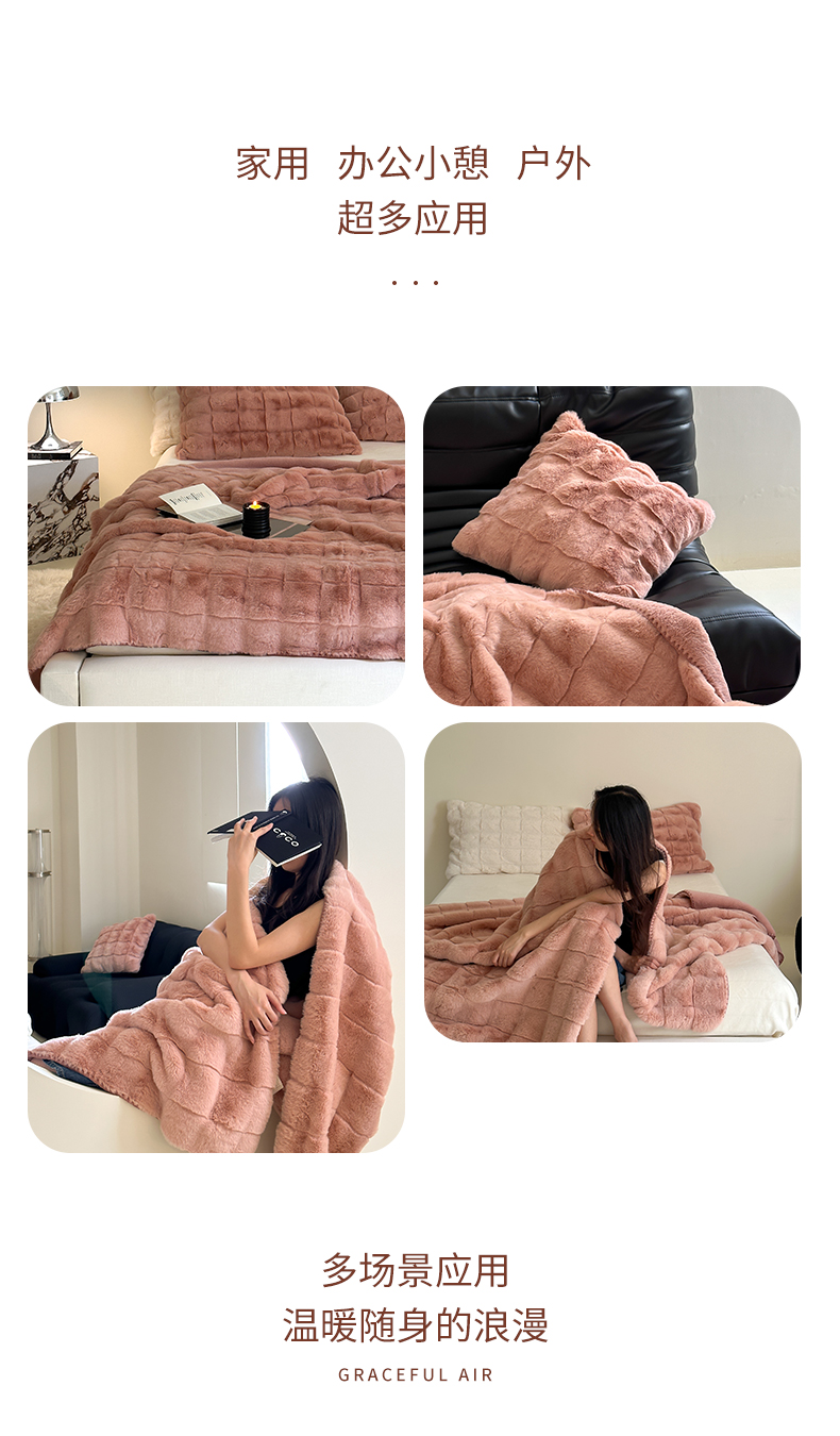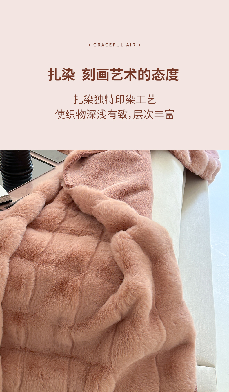 元元家居 丹麦雕大方格毛毯 A面为500克重丹麦雕皮草B面升级为310克重小兔毛