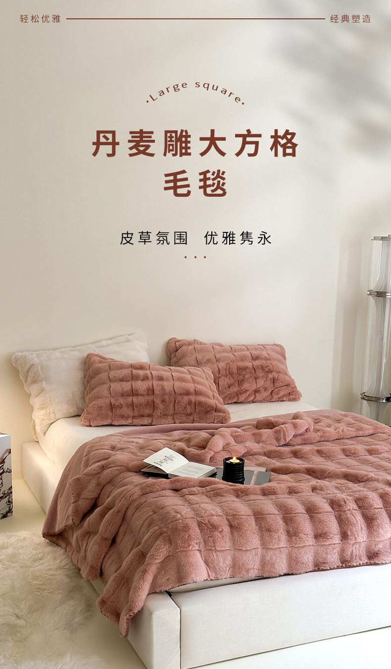 产品分类:丹麦雕大方格毛毯